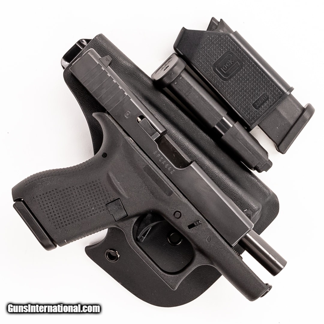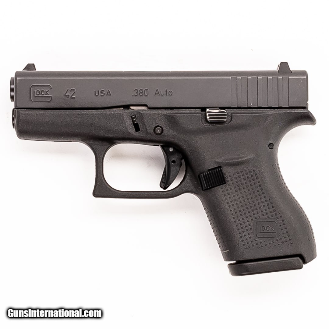 Description: Guns Listing ID: 369566 Made to be ultra-concealable, the Glock G42 is chambered in 380 ACP and designed in response to customer requests. This polymer-framed pistol utilizes a single stack magazine for a more compact design and weighs just over a pound when loaded. Plus, it has Glock‚‚s signature safe action trigger. This Glock 42 is in excellent condition! It comes with the original case, manual, three 6-round magazines, three Magguts 7+1 spring/followers, three Pearce pinky extension floor plates, and a right-handed Vedder pocket holster SOLD Manufacturer: GLOCK Model: G42 Caliber Info: .380 ACP Condition: Used - Certified Barrels: 3.3 BARREL Finish: BLACK |