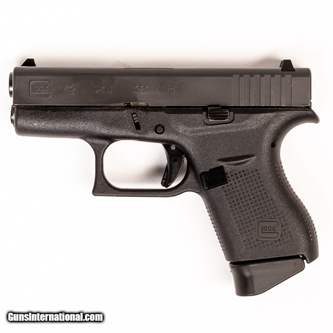Description: Guns Listing ID: 421157 Made to be ultra-concealable, this Glock G42 is chambered in 380 ACP and designed in response to customer requests. This polymer-framed pistol utilizes a single stack magazine for a more compact design and weighs just over a pound when loaded. Plus, it has Glock‚‚s signature safe action trigger for a better shooting experience. This G42 includes on 6-round magazine SOLD Manufacturer: GLOCK Model: G42 Caliber Info: .380 ACP Condition: Used - Certified Barrels: 3.3 BARREL Finish: BLACK |