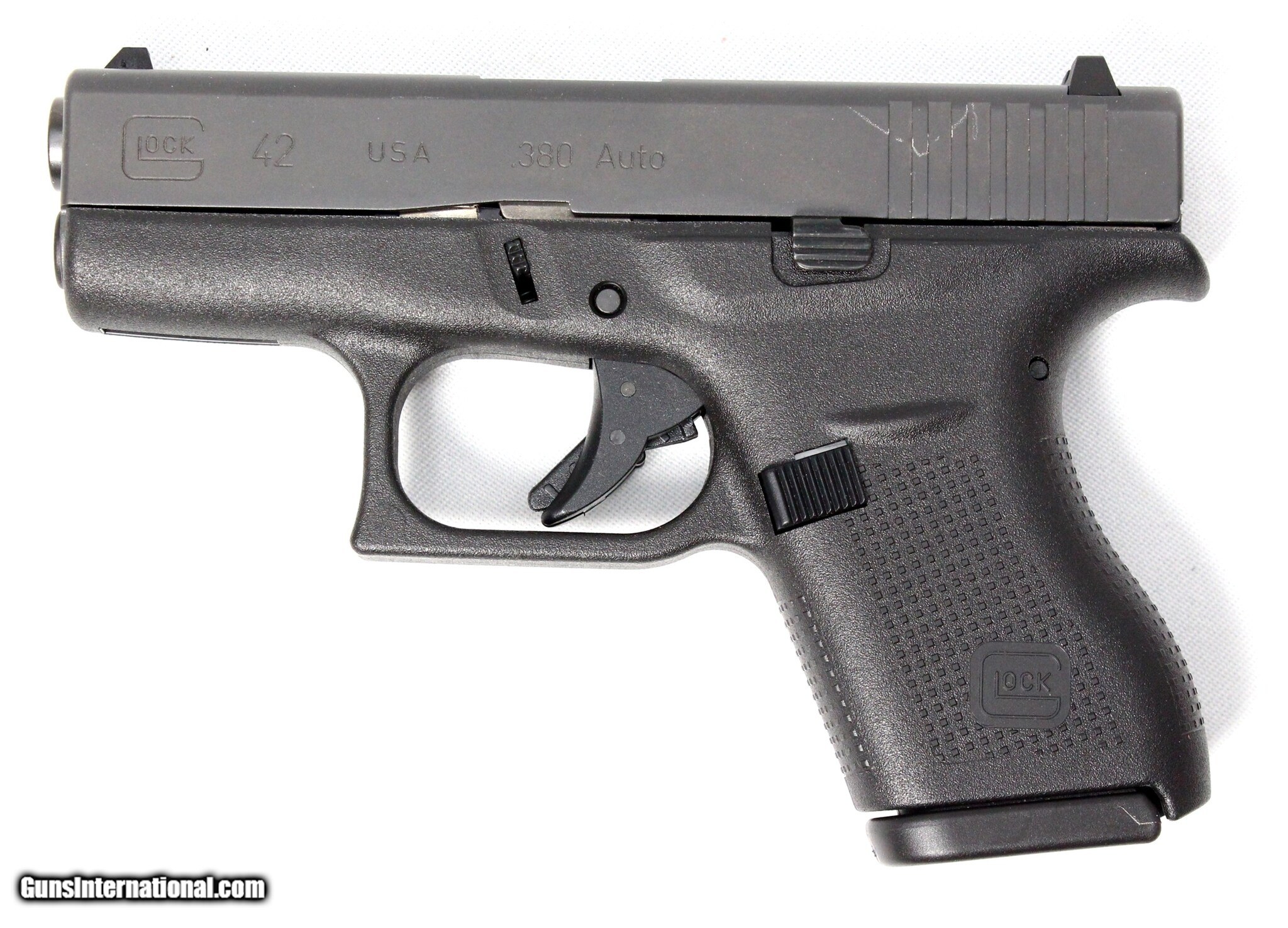 Description: Guns Listing ID: 478519 Glock 42 380 auto. This firearm is in near perfect condition. I honestly do not believe it has ever been fired, but I cannot guarantee it has not been fired. Comes with the original hard case and 2 clips. SOLD Manufacturer: GLOCK Model: G42 Caliber Info: .380 ACP Condition: Used - Non-Certified Barrels: 3.25" barrel |
