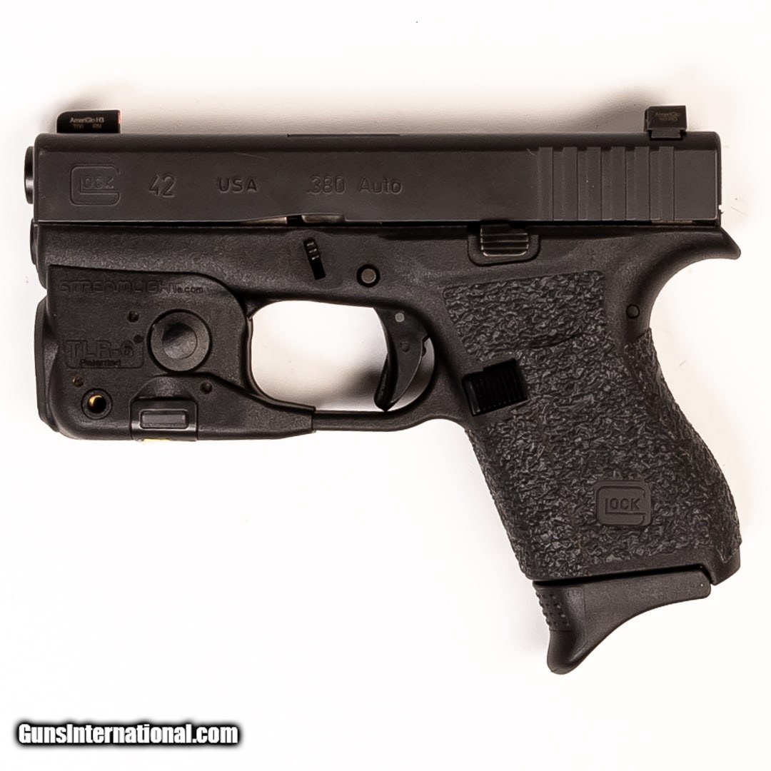 Description: Guns Listing ID: 545024 The Glock 42 is the perfect pistol for daily carry. Easy to conceal, releasable and rugged, the Glock 42 is a popular pistol for a reason. This handgun features Talon grips, a Streamlight light/laser combo, Ameriglo night sights, an IWB holster, and two 6-round magazines. SOLD Manufacturer: GLOCK Model: G42 Caliber Info: .380 ACP Condition: Used - Certified Barrels: 3.1 BARREL Finish: BLACK |