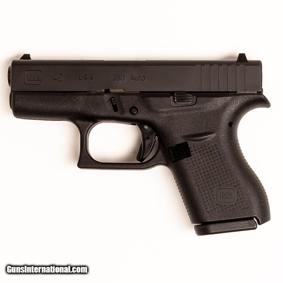 Description: Guns Listing ID: 571720 Made to be ultra-concealable, this Glock G42 is chambered in 380 ACP and designed in response to customer requests. This polymer-framed pistol utilizes a single stack magazine for a more compact design and weighs just over a pound when loaded. Plus, it has Glock‚‚s signature safe action trigger for a better shooting experience. Two 6-round magazines are included SOLD Manufacturer: GLOCK Model: G42 Caliber Info: .380 ACP Condition: Used - Certified Barrels: 3.3 BARREL Finish: BLACK |