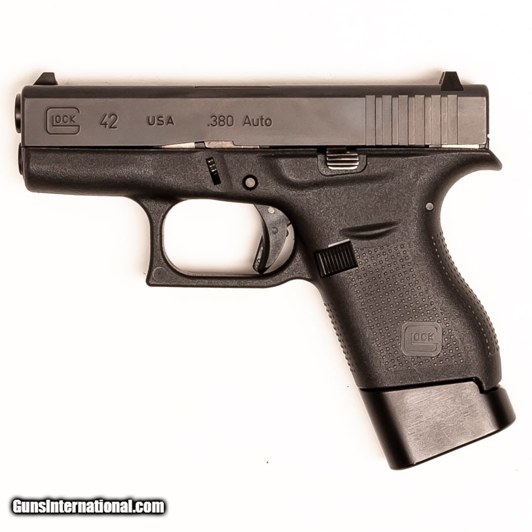 Description: Guns Listing ID: 553968 Made to be ultra-concealable, the Glock G42 is chambered in 380 ACP and designed in response to customer requests. This polymer-framed pistol utilizes a single stack magazine for a more compact design and weighs just over a pound when loaded. Plus, it has Glock‚‚s signature safe action trigger. This G42 includes the original case, manual, one 6-round magazine, one 8-round magazine, and a holster. SOLD Manufacturer: GLOCK Model: G42 Caliber Info: .380 ACP Condition: Used - Certified Barrels: 3.1 BARREL Finish: BLACK |