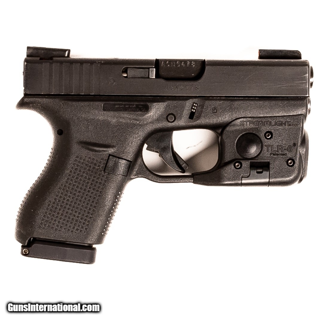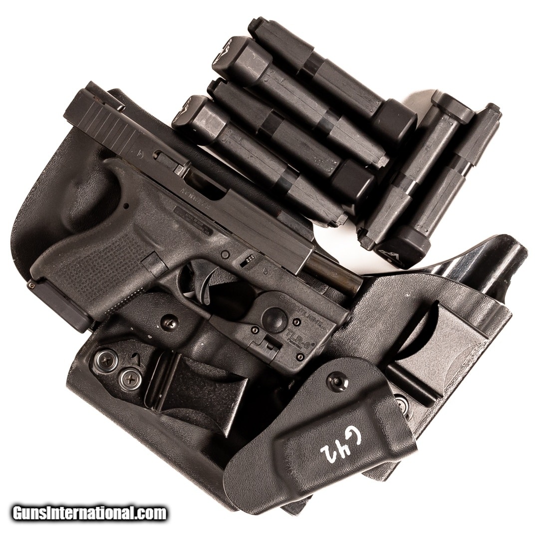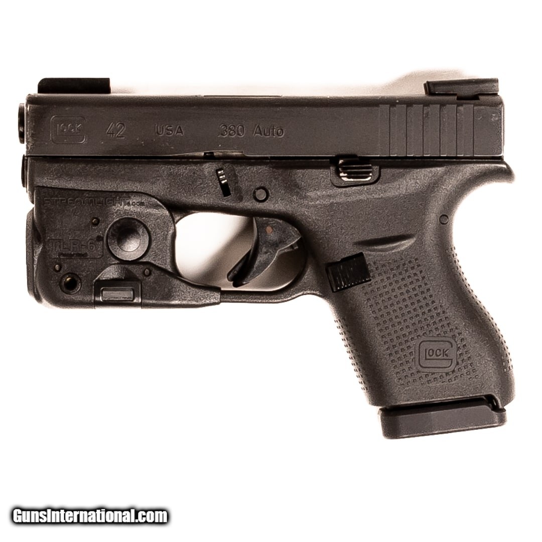 Description: Guns Listing ID: 744972 Made to be ultra-concealable, the Glock G42 is chambered in 380 ACP and designed in response to customer requests. This polymer-framed pistol utilizes a single stack magazine for a more compact design and weighs just over a pound when loaded. Plus, it has Glock‚‚s signature safe action trigger. This G42 is equipped with a Streamlight TLR-6 and includes seven 6-round magazines, two right-handed IWB holsters, one pocket holster, and one mag holster. Get the best bang for your buck when you get a Certified Used Firearm . When you see the Certified Used stamp on any of our firearms, you can be confident that you’re getting exactly what you want – a gun only in very good to excellent condition and held to the highest quality standard. All Certified Used Guns come with a ‘no questions asked’ return policy . PLUS, ALL CERTIFIED USED GUNS SHIP FREE SOLD Manufacturer: GLOCK Model: G42 Caliber Info: .380 ACP Condition: Used - Certified Barrels: 3.2 BARREL Finish: BLACK |