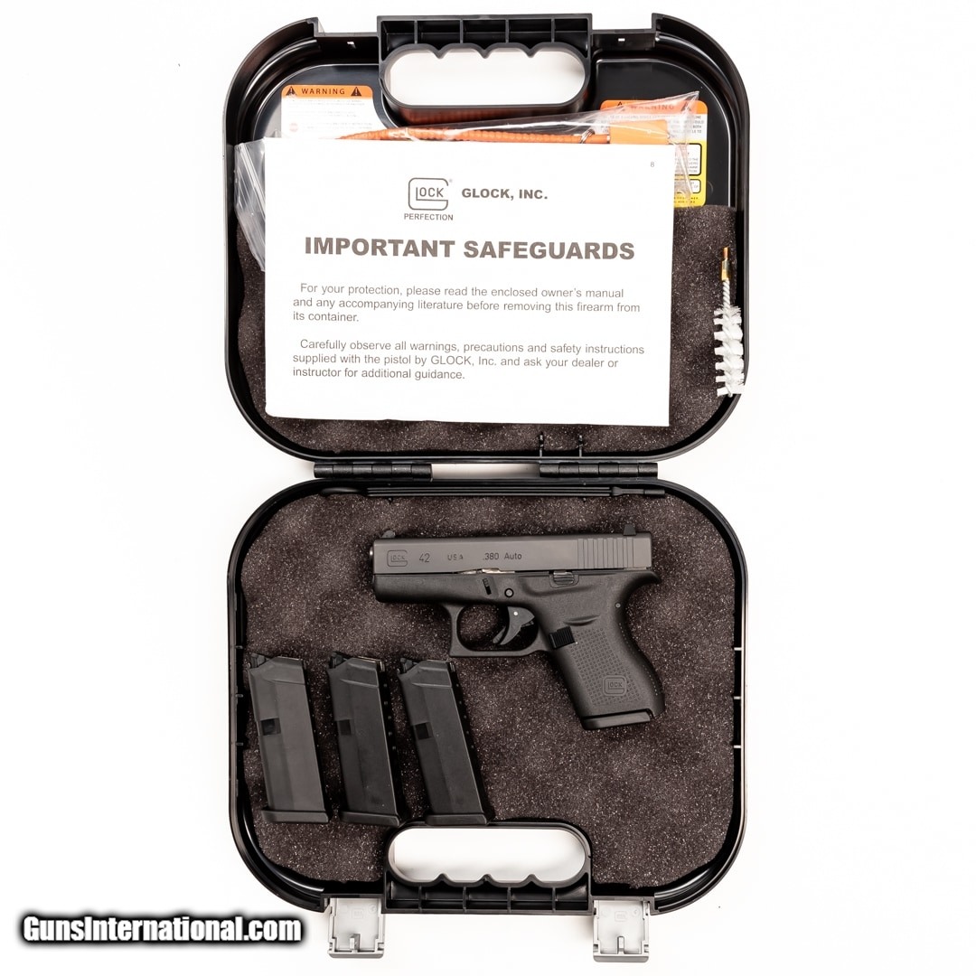 Description: Guns Listing ID: 901175 Made to be ultra-concealable, this Glock G42 is chambered in 380 ACP and designed in response to customer requests. This polymer-framed pistol utilizes a single stack magazine for a more compact design and weighs just over a pound when loaded. Plus, it has Glock’s signature safe action trigger for a better shooting experience. This handgun features four 6-round magazines and the original box with the manual. Get the best bang for your buck when you get a Certified Used Firearm . When you see the Certified Used stamp on any of our firearms, you can be confident that you’re getting exactly what you want – a gun only in very good to excellent condition and held to the highest quality standard. All Certified Used Guns come with a ‘no questions asked’ return policy . PLUS, ALL CERTIFIED USED GUNS SHIP FREE! SOLD Manufacturer: GLOCK Model: G42 Caliber Info: .380 ACP Condition: Used - Certified Barrels: not specified Finish: BLACK |