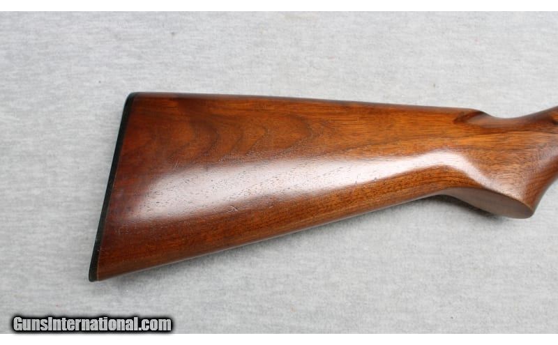 Description: Winchester Model 42 in .410 Gauge. This is a classic Winchester pump action that would be an excellent choice for collectors. It has a 26" barrel, fixed modified choke, 3" chamber, polished blue metal, and upgraded wood with gloss finish. Excellent, light wear and handling marks, shows very light field use. .410 Bore SOLD Chambers: 3 Inch Metal Condition: Excellent Wood Condition: Excellent with very minor handling marks Bore Condition: Bright Barrels: 26 Inches Triggers: Factory Stock Dimensions: LOP 13 3/4 Inches Fore End: Ribbed Walnut Butt Pad: Plastic Pad Sights: Brass bead on an elevated rib Chokes: Modified Choke Item Location: La Vista, NE |