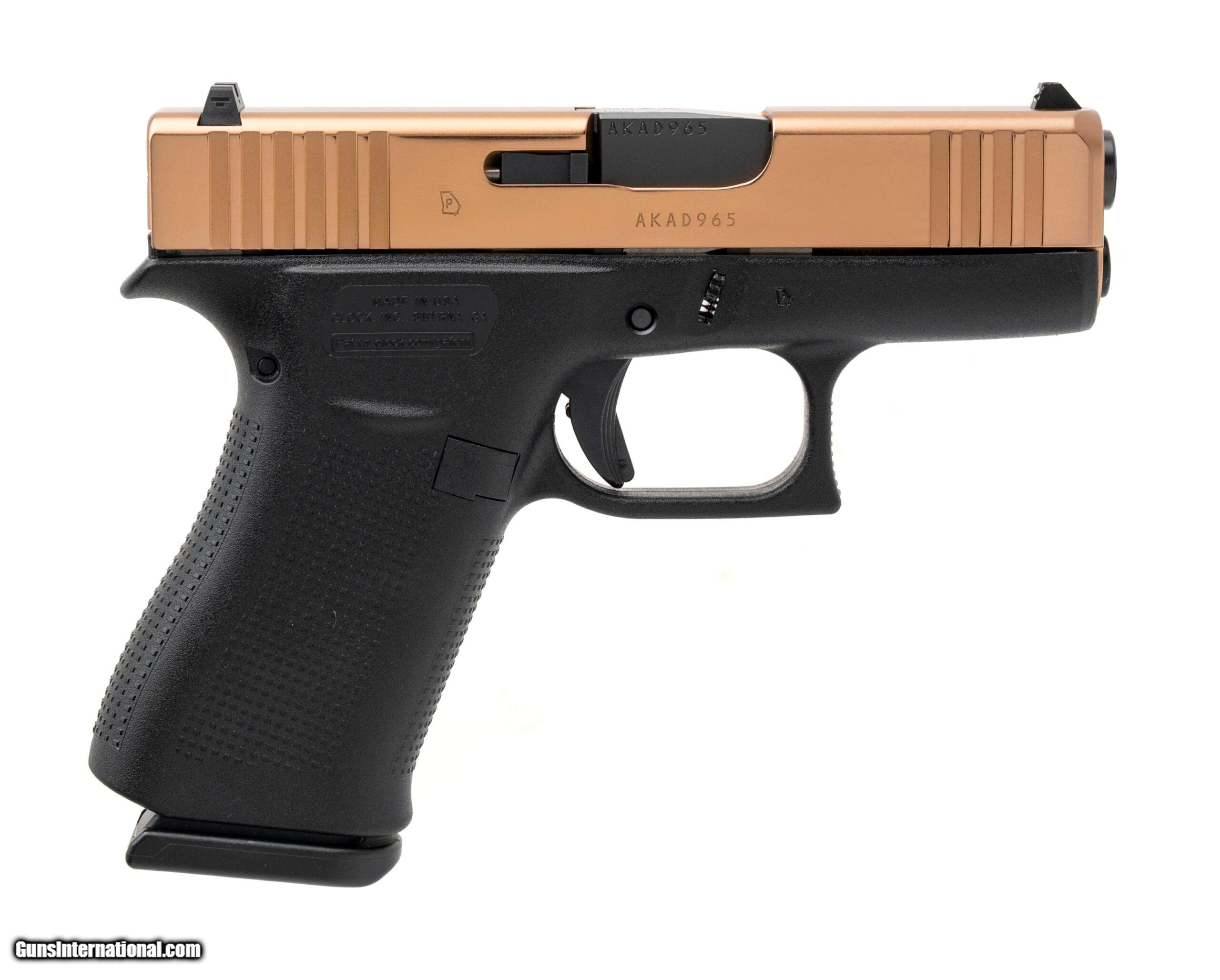Description: "Distributer's Exclusive Custom Striker Fired Pistol with a 3.41"" Glock Marksman Barrel. Micro-Compact, Rose Gold PVD Finish, and Polymer Frame. Includes 2-10rd Magazines. NEW. UPC: 764503001505 (STOCK PHOTO) SOLD |