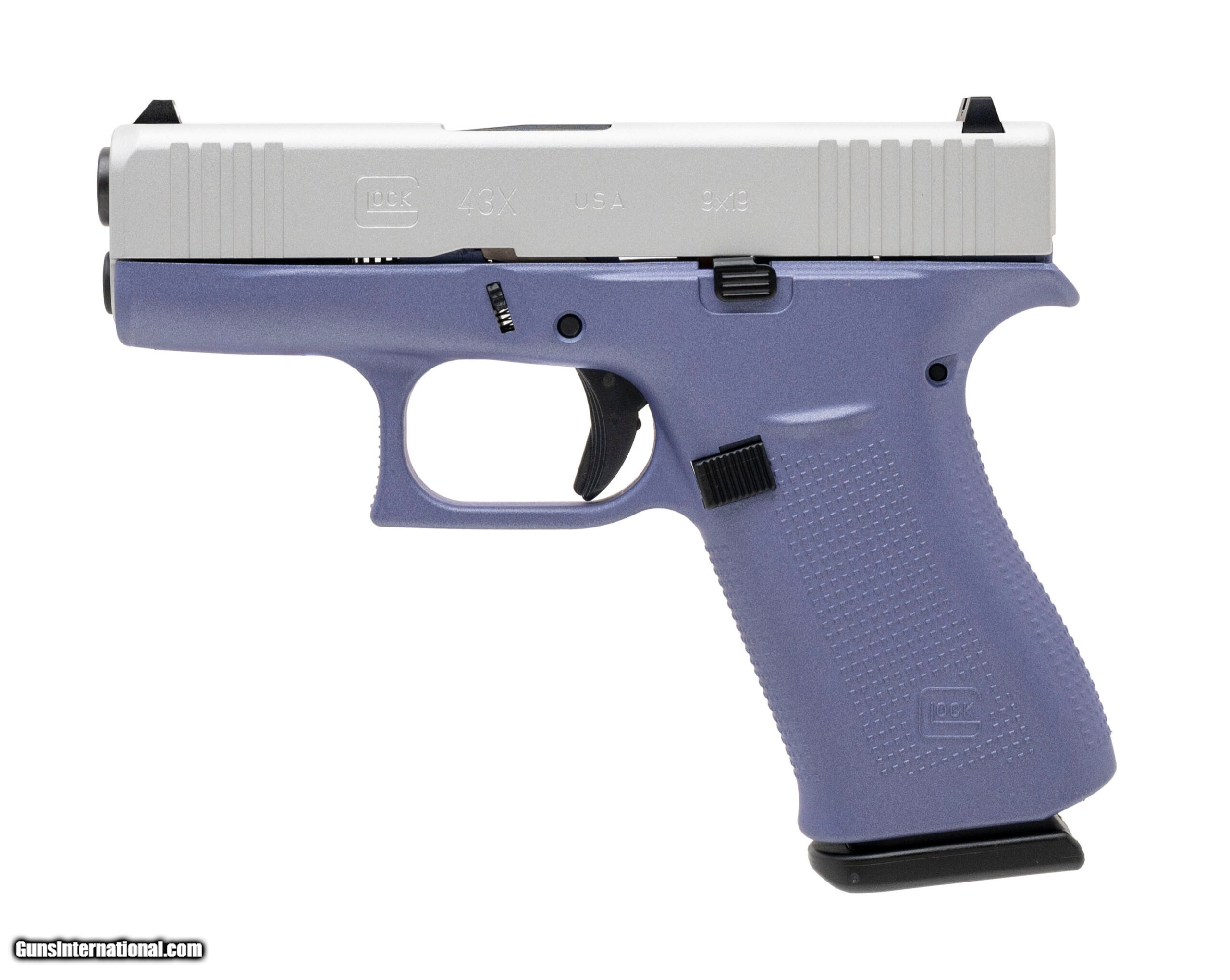 Description: "Glock 43X Orchid Pistol. 9mm with a 3.41"" barrel. Sub-compact polymer frame pistol with Cerakoted crushed Orchid frame, Satin Aluminum finish, and night sights. New. UPC: 850016570635 (STOCK PHOTO) SOLD |