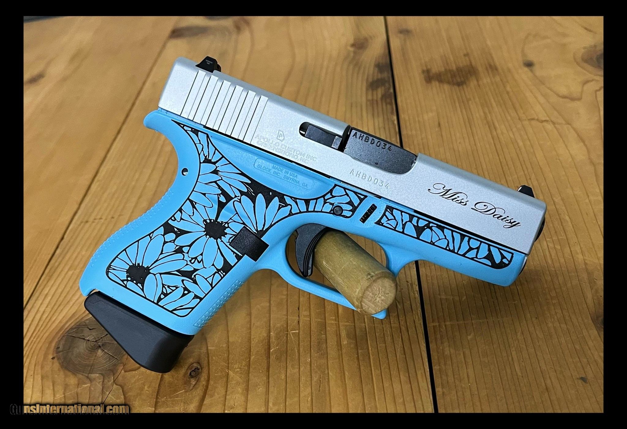 Description: Guns Listing ID: 621155 Meet Miss Daisy—the Glock 43 that showed up in a sundress and stole the whole picnic. Wrapped in a bright, floral, feel-good finish, this little beauty is bursting with fruity charm and frilly personality while still being 100% Glock underneath. ?? The vibes: Sweet daisy florals that scream cute but confident Lightweight, slim Glock 43—easy to carry, easy to adore Perfect balance of soft looks and serious performance Turns every range trip into a main-character moment She’s pretty. She’s playful. She’s not to be underestimated. ???? Whether you’re into pastel dreams, garden-party aesthetics, or just want a carry gun with personality and sparkle, Miss Daisy delivers sunshine with a bite. Because sometimes your Glock should be ?? fruity ?? frilly ?? and fully capable Manufacturer: APOLLO Model: GLOCK G43 Caliber Info: 9MM LUGER (9X19 PARA) Condition: Used - Non-Certified Barrels: 3.39" BARREL Action: SEMI AUTOMATIC Finish: BLUE CERAKOTE Price: $475.99 Contact Seller |