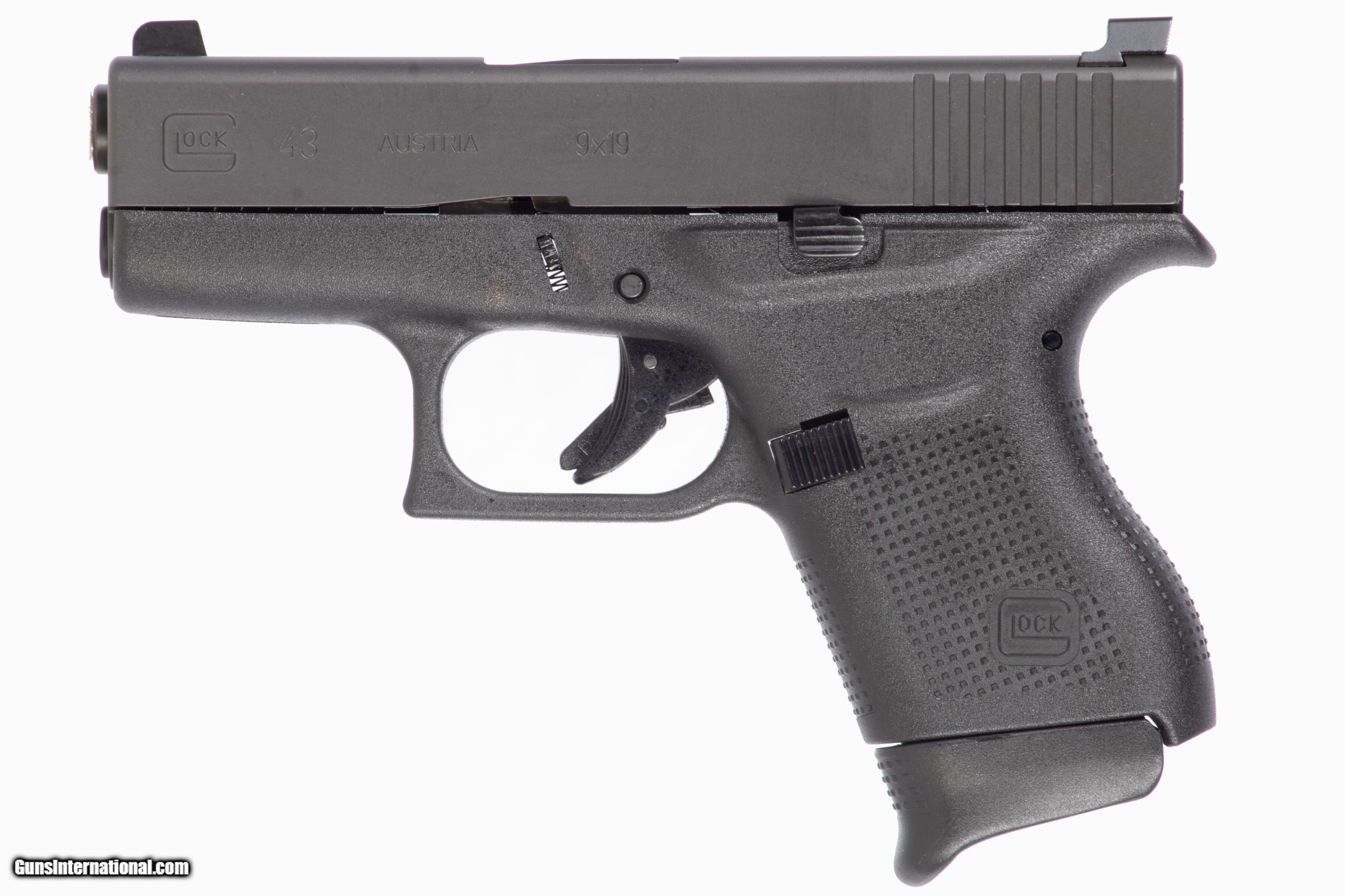 Description: Glock 43 chambered in 9 mm with a 3 1/2 inch barrel bright & shiny bore and Trijicon night sights. This firearm is in excellent condition and is covered by Dury's Lifetime Warranty.