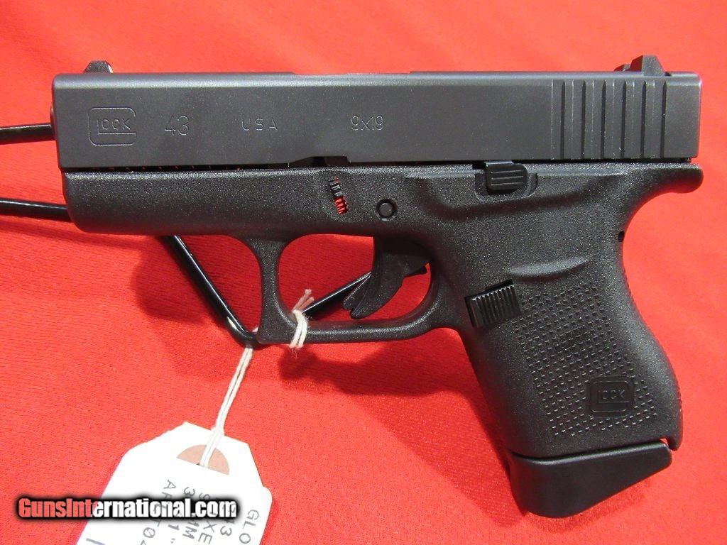 Description: Glock Model 43 is their most compact offering and is chambered in 9MM: 2-6 round single stack magazine, white outline rear sight with a white dot front sight, and factory case. An excellent little carry piece with Glock's patented reliability. SOLD |