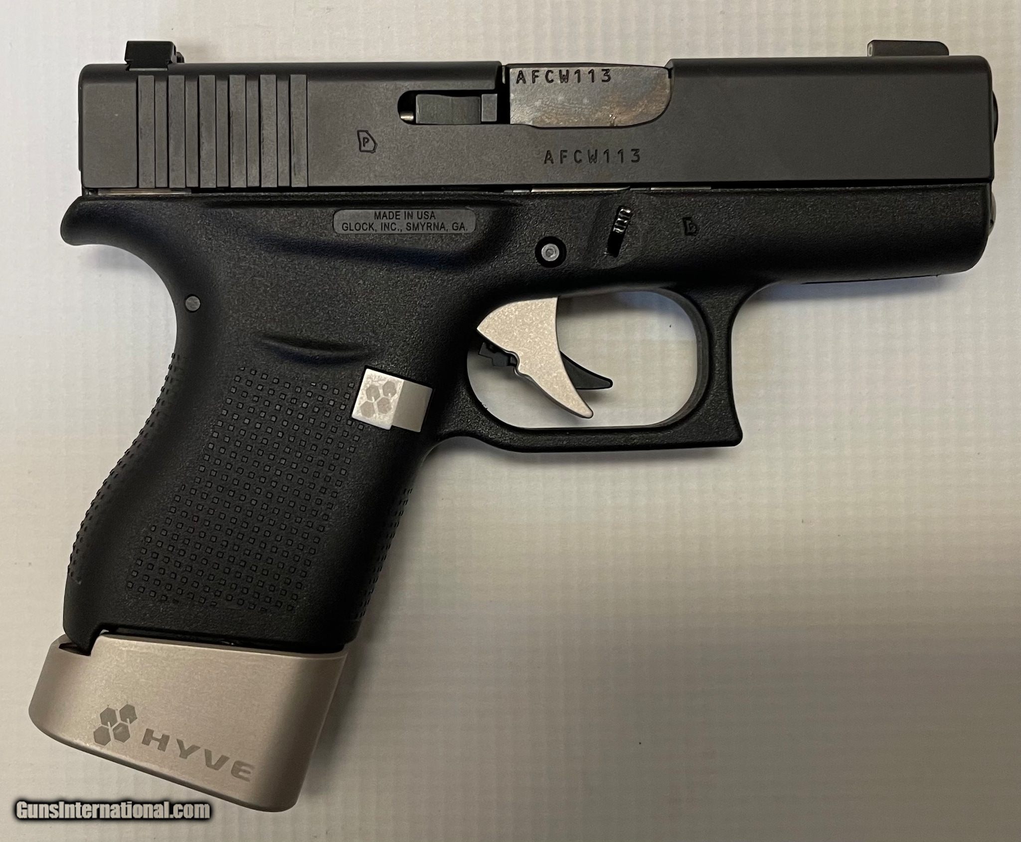 Description: Guns Listing ID: 1063088 This pistol has been upgraded with many tactical features including; Hyve +2 magazine extension (pictured), Hyve +1 magazine extension, Hyve Monarch trigger shoe, Hyve extended magazine release, Ghost extended slide release, AMERIGLO tritium iron sights, and a Lasermax guide rod green laser. In addition, this Glock 43 comes with its original case. The already legendary G43 is a GLOCK Single stack, 9 mm Luger caliber pistol. It is ultra-concealable, accurate and a fantastic tool for all shooters regardless of one’s hand size. The grip has a built-in beaver tail design which allows the shooter to acquire a high and tight grip. The aggressive texture of the grip surface allows for comfortable and reliable operation of the pistol. The large magazine catch makes quick work of removing the six-round magazine. Engineered based on the same superlative standards that GLOCK is famous for, the tiny G43 tolerates the same torture tests all its bigger brothers in the GLOCK pistol family withstand. SOLD Manufacturer: GLOCK Model: 43 Caliber Info: 9MM LUGER (9X19 PARA) Condition: Used - Non-Certified Barrels: 3.41 BARREL Finish: BLACK |