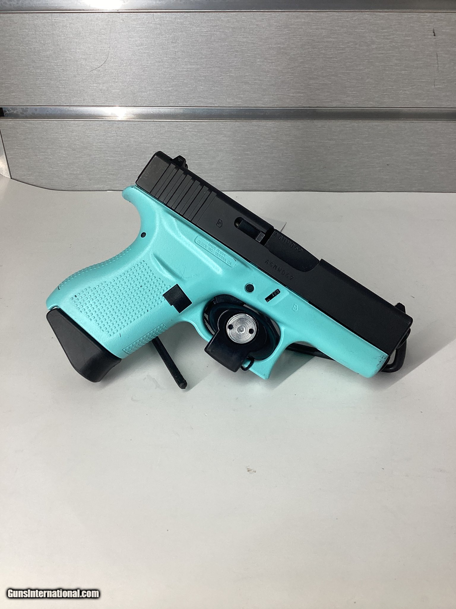 Description: Guns Listing ID: 467299 Great condition, turquoise finish , one mag SOLD Manufacturer: GLOCK Model: 43 Caliber Info: 9MM LUGER (9x19 PARA) Condition: Used - Non-Certified Barrels: 3 Finish: TURQUOISE AND BLACK |