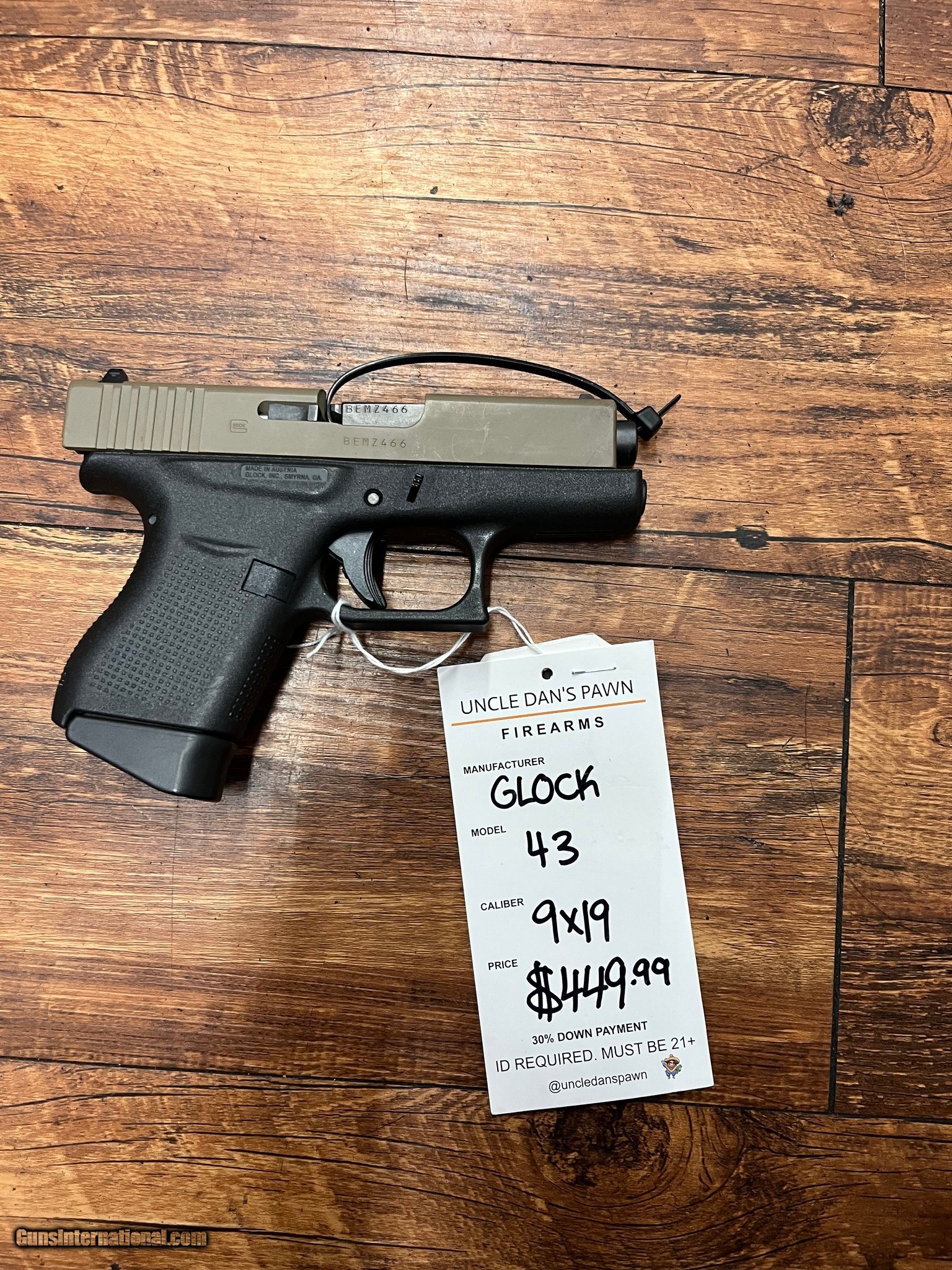 Description: Guns Listing ID: 479727 IN GREAT SHAPE SOLD Manufacturer: GLOCK Model: 43 Caliber Info: 9MM LUGER (9x19 PARA) Condition: Used - Non-Certified Barrels: 2 BARREL Finish: 2-tone |