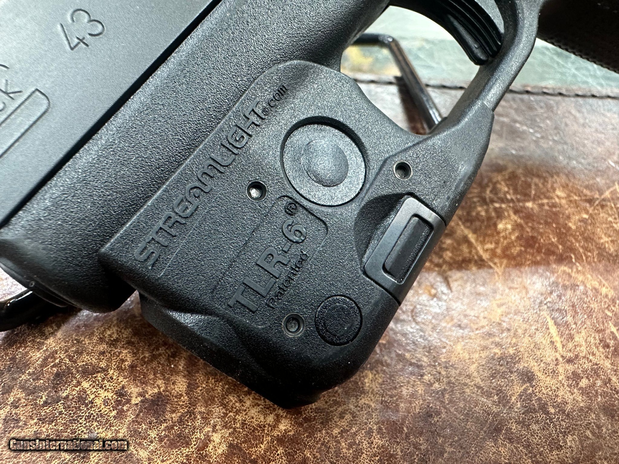 Description: Guns Listing ID: 480718 Up for purchase is a Glock G43 semi auto striker fired pistol. This pistol has a 3.41\" barrel chambered in 9mm. The pistol is in very good overall condition with some light wear on the finish of the slide from being handled and carried in a holster. It does also come with a Streamlight TLR6 weaponlight attached, a holster for the gun and light combo, as well as 6 magazines! The pictures show more detail on overall condition. SOLD Manufacturer: GLOCK Model: 43 Condition: Used - Non-Certified Barrels: 3.41 Gauge Info: 9MM LUGER (9x19 PARA) Finish: black |