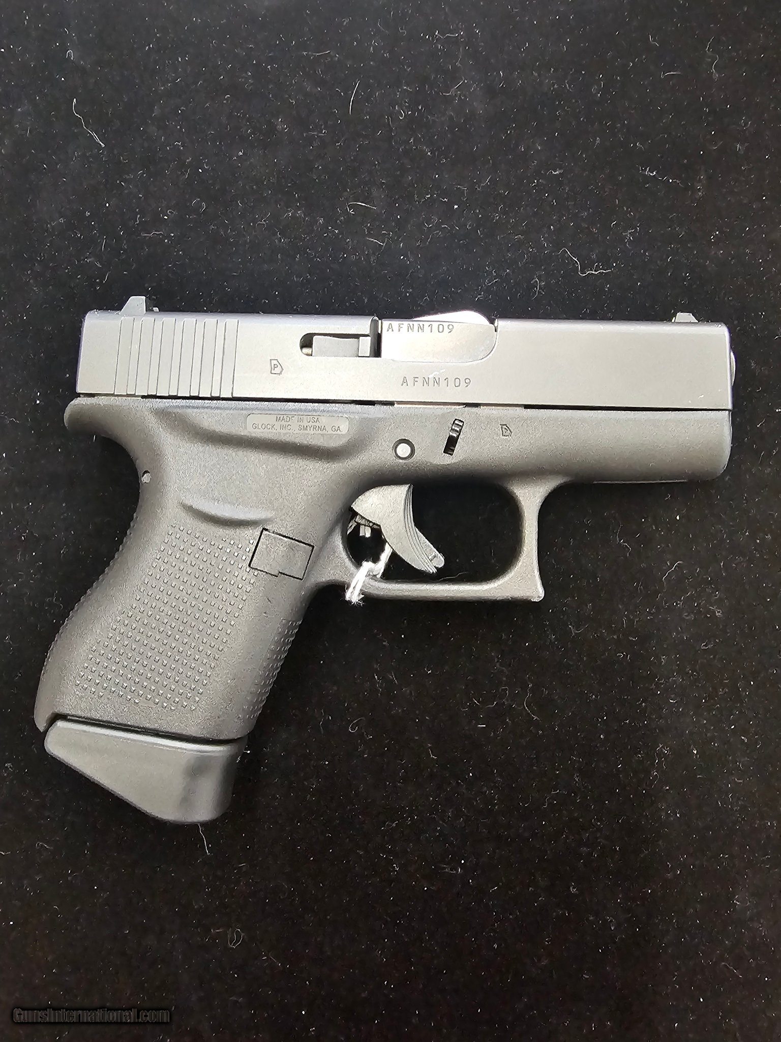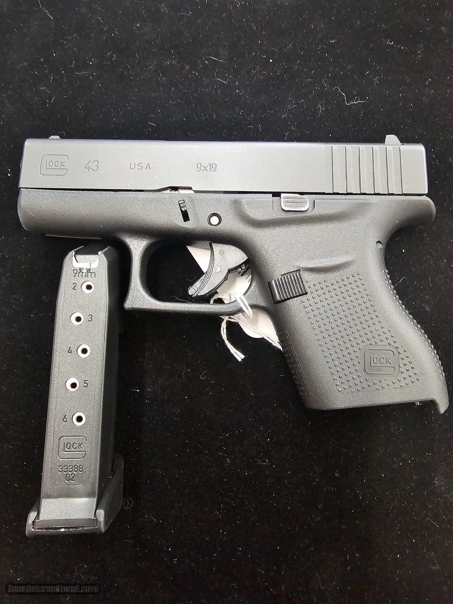 Description: Guns Listing ID: 492607 A Glock 43 9mm with a six-round magazine is a sleek and compact firearm, designed primarily for concealed carry and personal defense. Here‚‚s a detailed description: Size & Build: The Glock 43 is a subcompact, single-stack handgun known for its slim profile, making it ideal for those who want a low-profile option for concealed carry. The frame is made of durable polymer, and the slide is crafted from steel with a matte black finish. Its small dimensions (roughly 6.26 inches in length and 4.25 inches in height) allow it to be easily concealed under clothing. 6-Round Magazine: The Glock 43 comes standard with a six-round magazine, which is housed within the slim grip. The six-round capacity, combined with the single-stack magazine design, keeps the pistol thin and manageable, ensuring it remains comfortable for daily carry. The magazine is typically flush-fit, maintaining the Glock‚‚s compact and unobtrusive profile. Ergonomics: The grip is designed to fit most hands comfortably, even though it‚‚s small. The texturing on the grip allows for a secure hold, while the overall weight (around 17 ounces) makes it lightweight without feeling too insubstantial. Simplicity: Like most Glock models, the Glock 43 has a reputation for simplicity and reliability. It features Glock’s famous \"Safe Action\" system, which includes a consistent trigger pull, integrated safety mechanisms, and a reputation for flawless operation. Finish & Aesthetics: The Glock 43 typically comes in a matte black finish, giving it a tactical and professional look. The minimal design, with no unnecessary bulk, makes it an attractive option for those seeking a no-frills, reliable firearm. This firearm is a solid choice for anyone looking for a high-performance, easy-to-carry 9mm pistol with a manageable magazine capacity. It‚‚s well-suited for personal defense, providing enough rounds for most situations while staying incredibly portable. SOLD Manufacturer: GLOCK Model: 43 Caliber Info: 9MM LUGER (9x19 PARA) Condition: Used - Non-Certified Barrels: 4 Finish: black |
