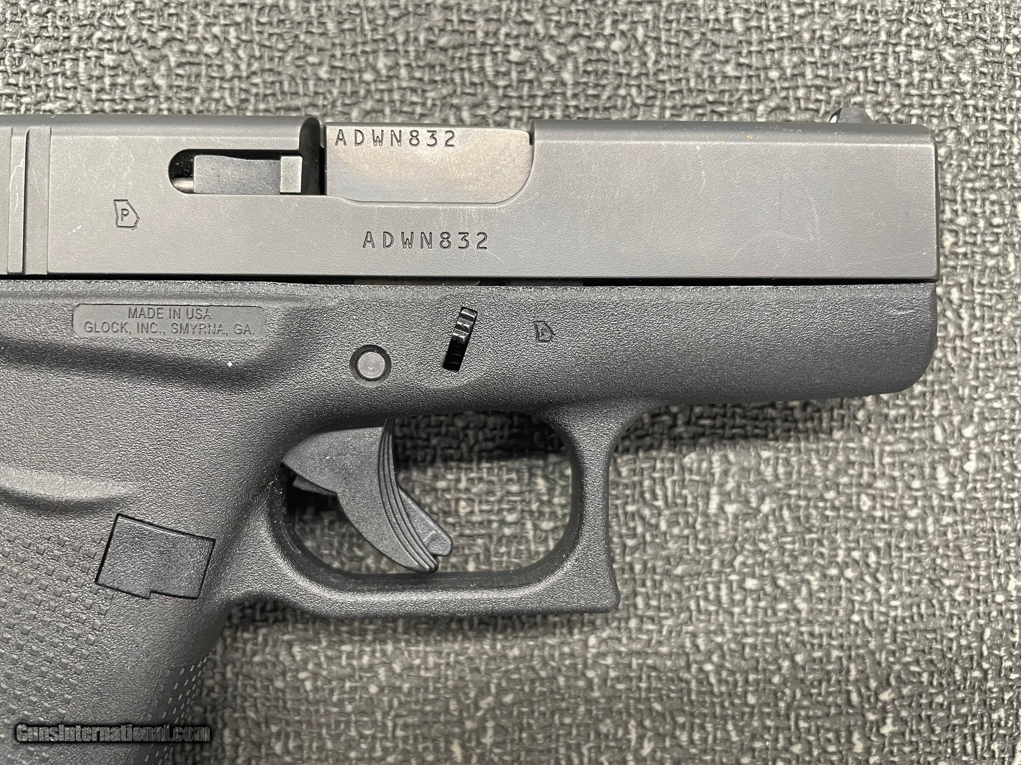 Description: Guns Listing ID: 551797 Used Glock 43 9mm it does have some scratches and scuffs on the slide. It also has some little white marks on it. SOLD Manufacturer: GLOCK Model: 43 Caliber Info: 9MM LUGER (9x19 PARA) Condition: Used - Non-Certified Barrels: 3.3 BARREL Action: SEMI AUTOMATIC |