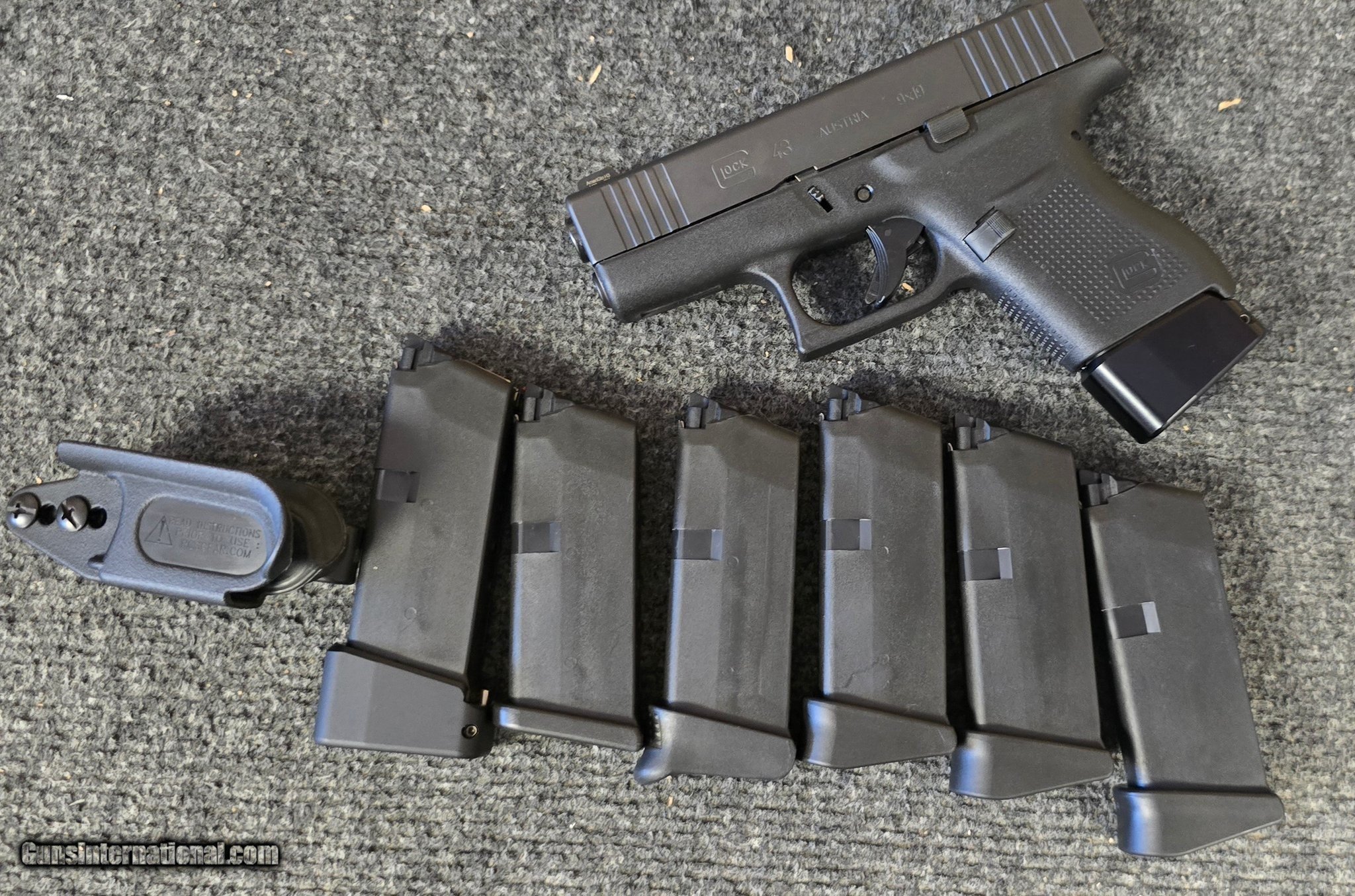 Description: Guns Listing ID: 565776 Pre-Owned Glock 43 9mm 6+1 Black w/ 5x 6rd and 2x 8rd mags and Raven V2GS trigger guard holster. No factory box or accessories SOLD Manufacturer: GLOCK Model: 43 Caliber Info: 9MM LUGER (9x19 PARA) Condition: Used - Non-Certified Barrels: 3.41" BARREL Action: SEMI AUTOMATIC Finish: black |