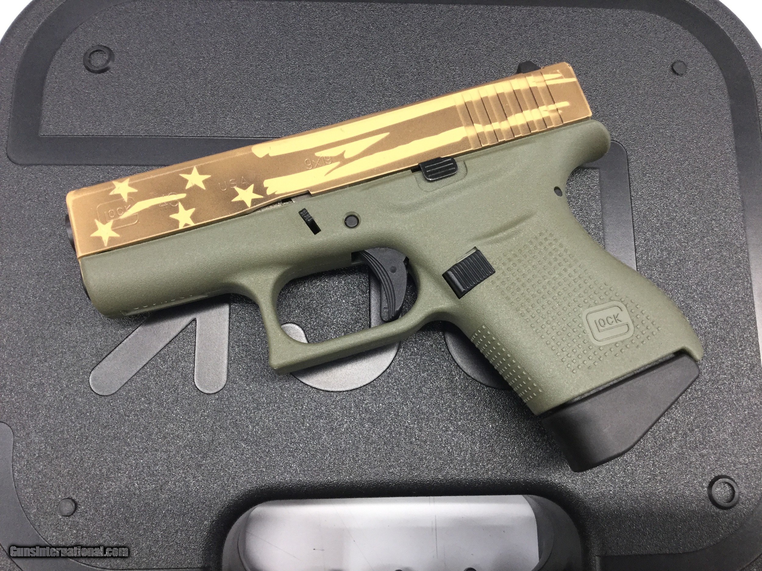 Glock 43 9mm OD frame / Dark Earth & Tan Flag slide
