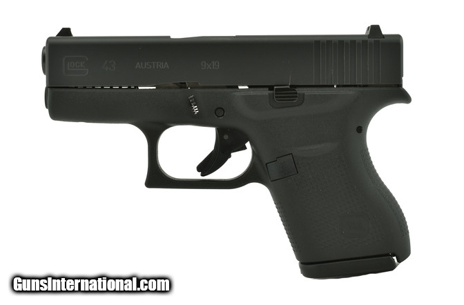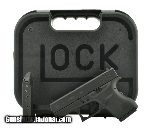 Description: Glock 43 9mm caliber pistol. Single stack carry model with box and magazine.