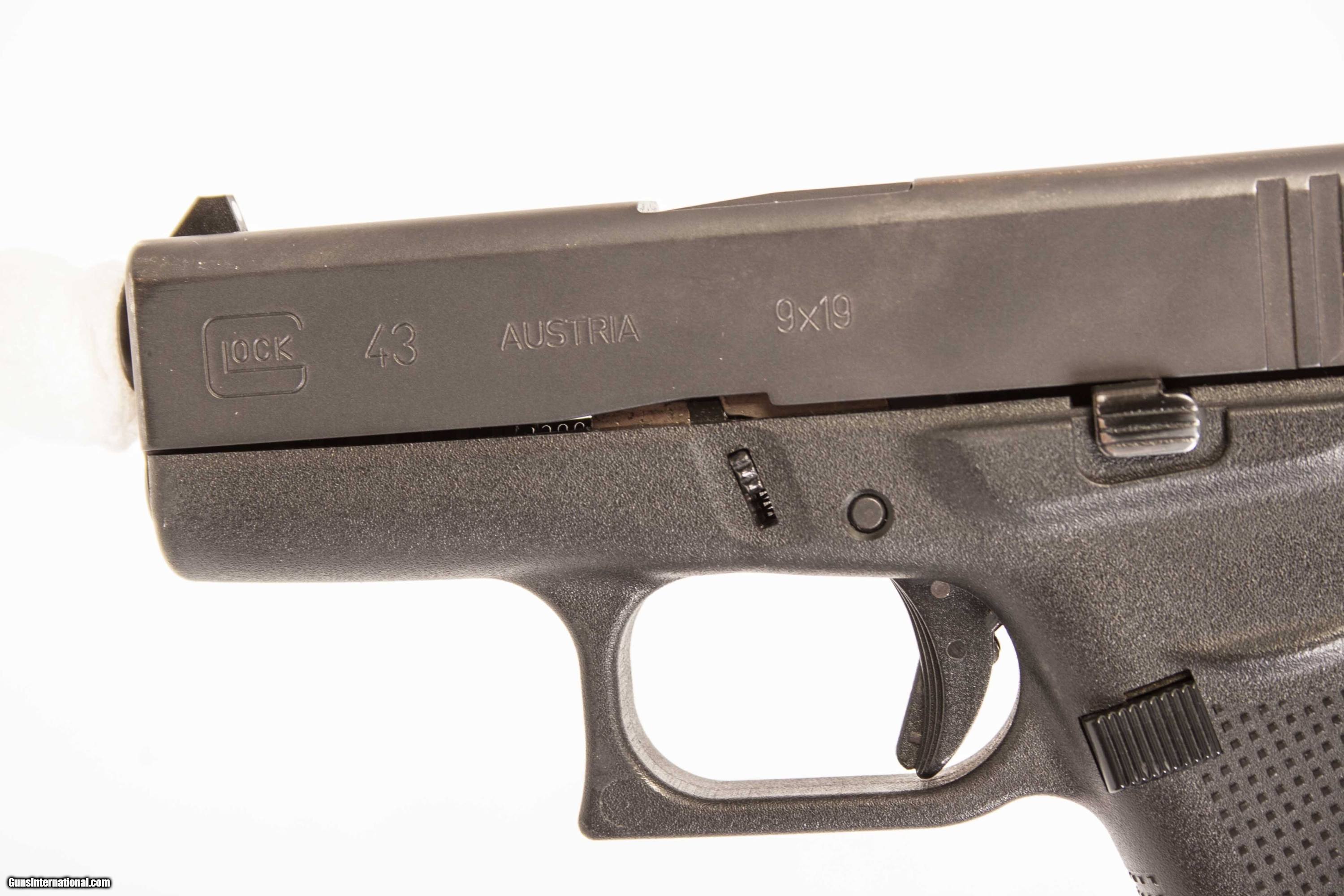 Glock 43 chambered in 9mm with a 3 1/2 inch barrel bright bore good grooves original case and 1 extra magazine. This gun is in excellent condition and is covered by Dury's Lifetime Warranty.