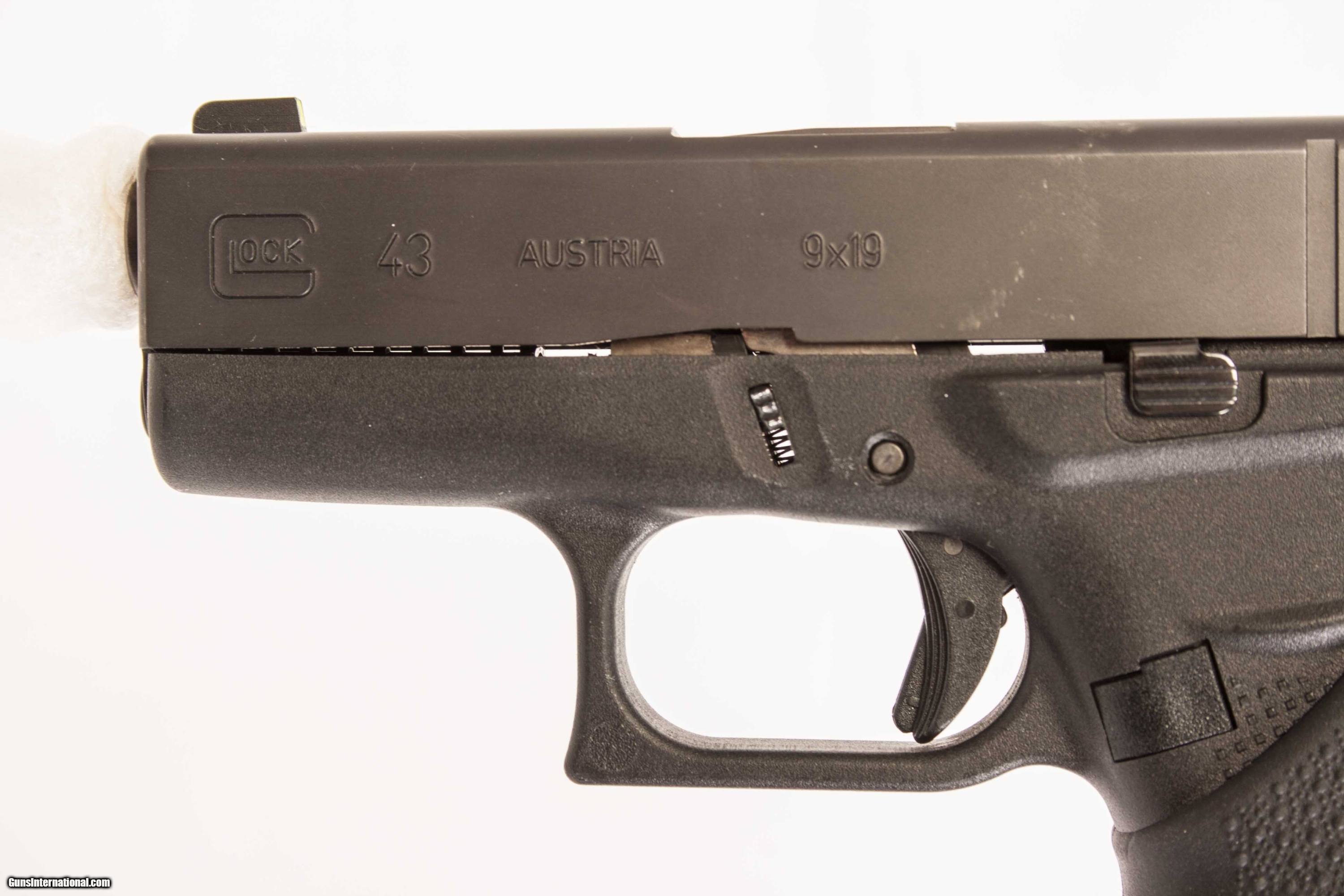 Glock 43 chambered in 9mm with a 3 1/2 inch barrel bright bore original case and 1 extra magazine. This gun is in excellent condition and is covered by Dury's Lifetime Warranty.