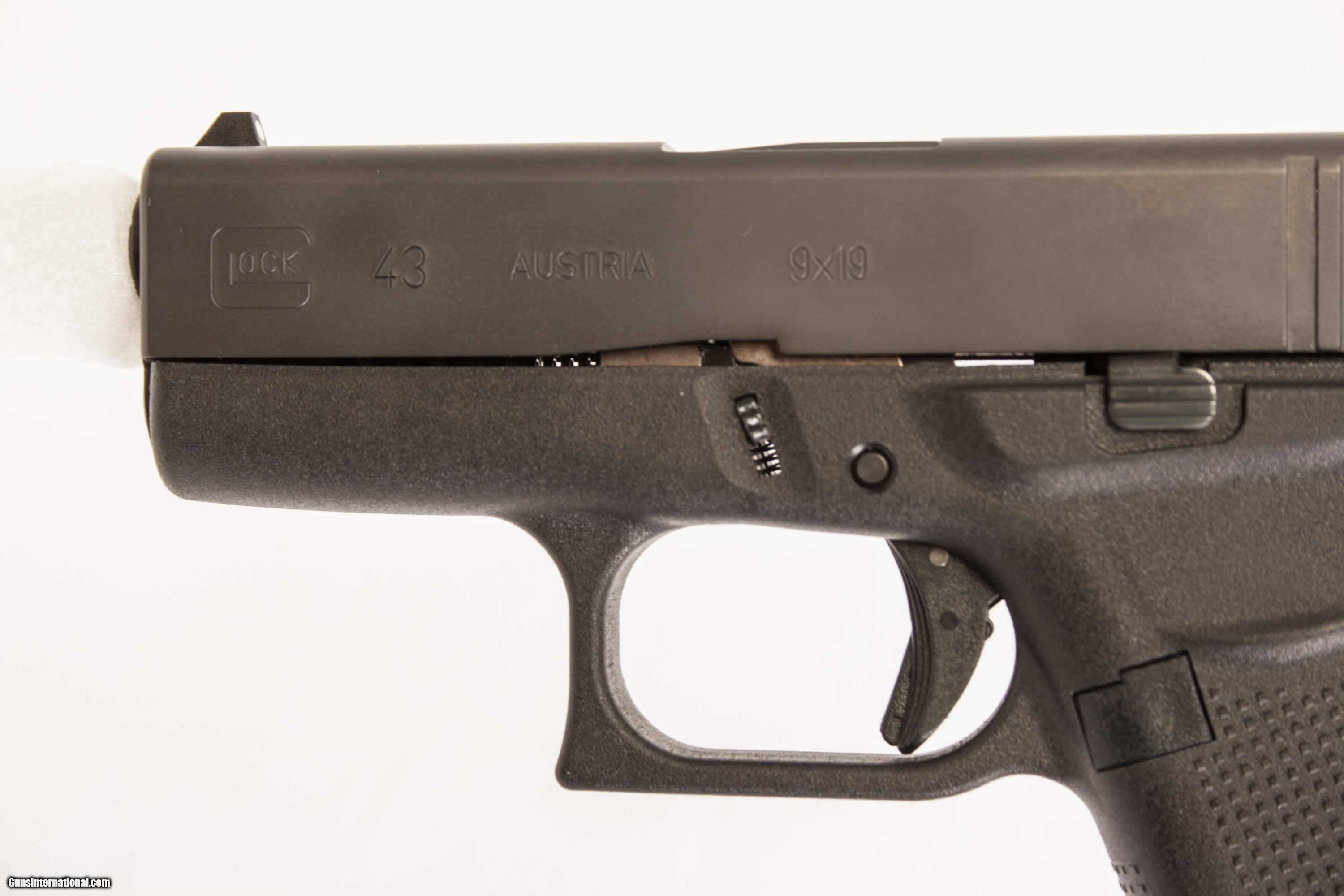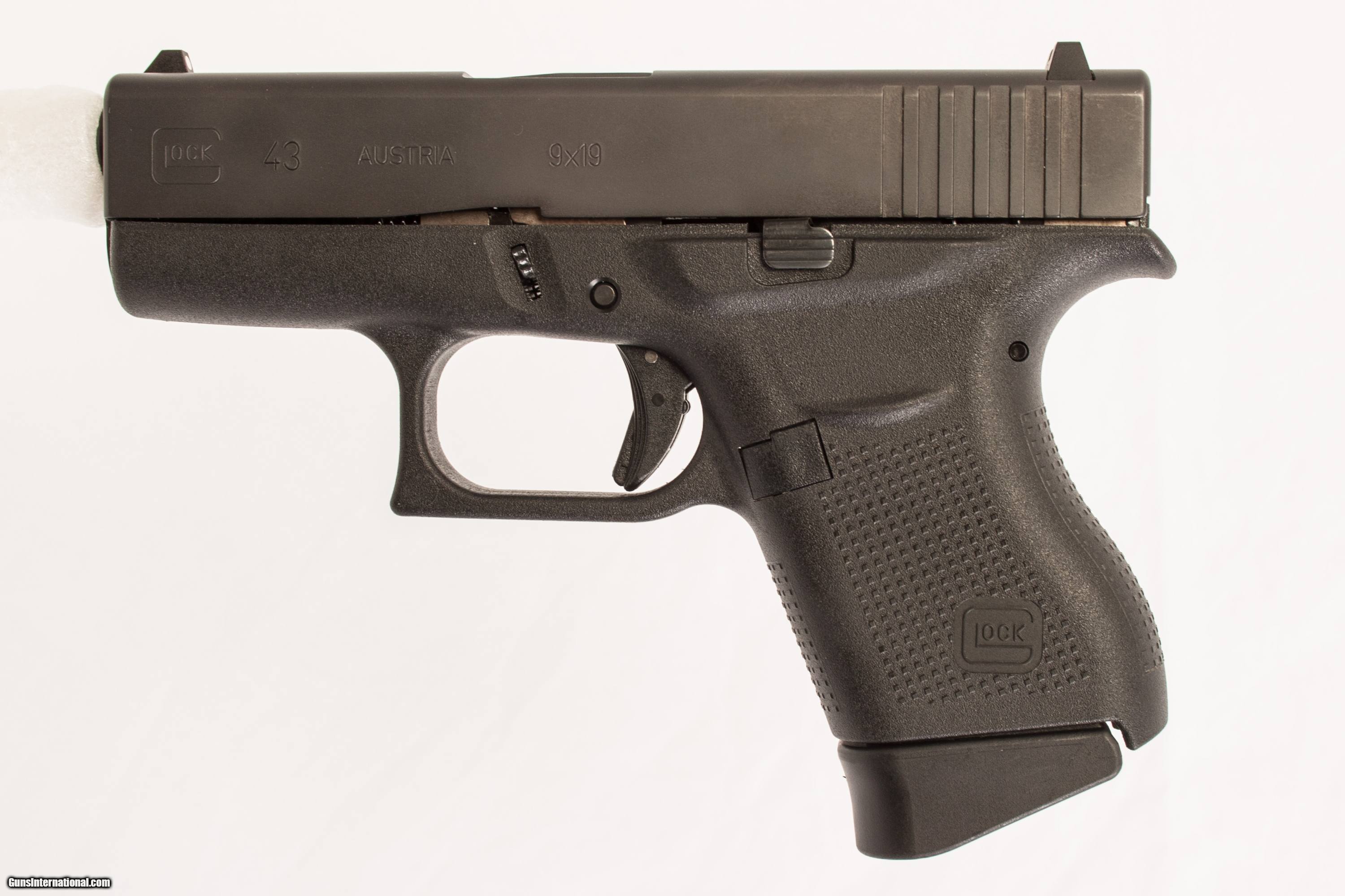 GLOCK G43 CHAMBERED IN 9MM WITH A 3.5 INCH BARREL COMES WITH CASE. THIS GUN IS IN EXCELLENT CONDITION AND IS COVERED BY DURY'S LIFETIME WARRANTY.