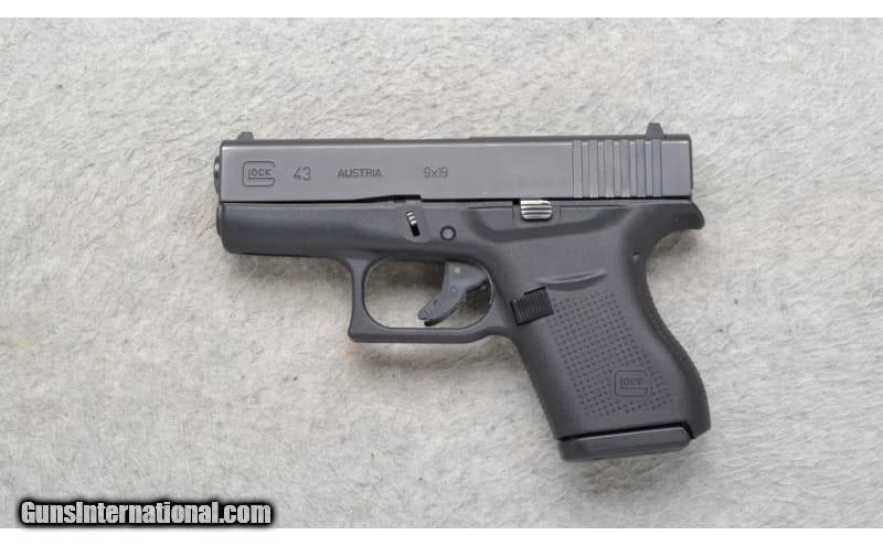 Description: This Glock Model 43 is a right hand semi-auto pistol in 9mm Cal. It has a 3.25 inch barrel with a rear serrated slide. A blade front sight and notch rear sight with white sight highlights. 9mm Parabellum SOLD Chambers: 6 shot magazine. Metal Condition: Good. Shows a little use. Bore Condition: Excellent. Barrels: 3.25 inch barrel with a rear serrated slide. Weight: 18 oz. Sights: Blade front. Notch rear. White sight highlights. Item Location: Richfield, WI |