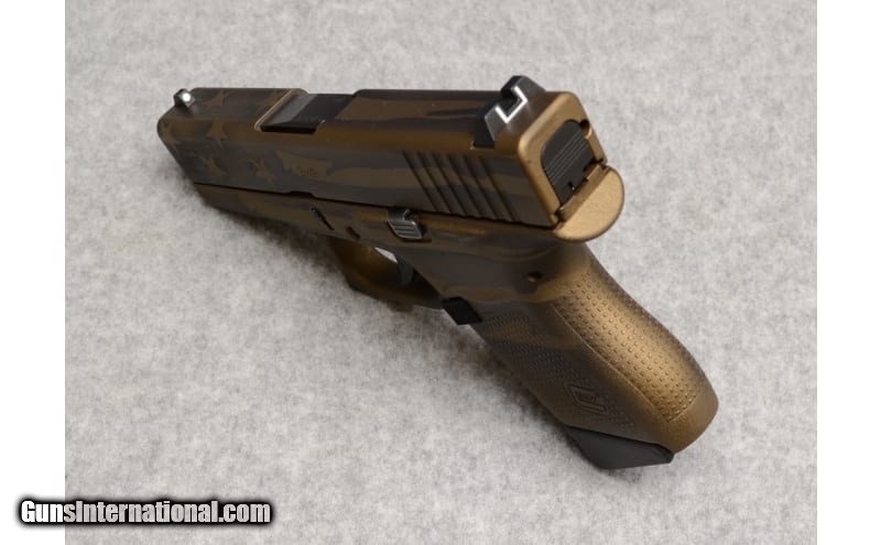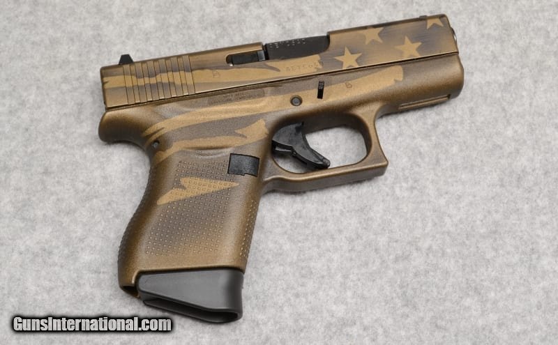 Description: Here we have a fantastic condition Glock 43 with an american flag cerakoated bronze finish. Very little signs of use are evident, and overall seems like new. 9mm Luger SOLD Chambers: 9mm Luger Metal Condition: Fantastic Bore Condition: Excellent Barrels: 3" Factory Triggers: OEM Weight: 1lb 2oz Sights: Original Item Location: Columbus, OH |