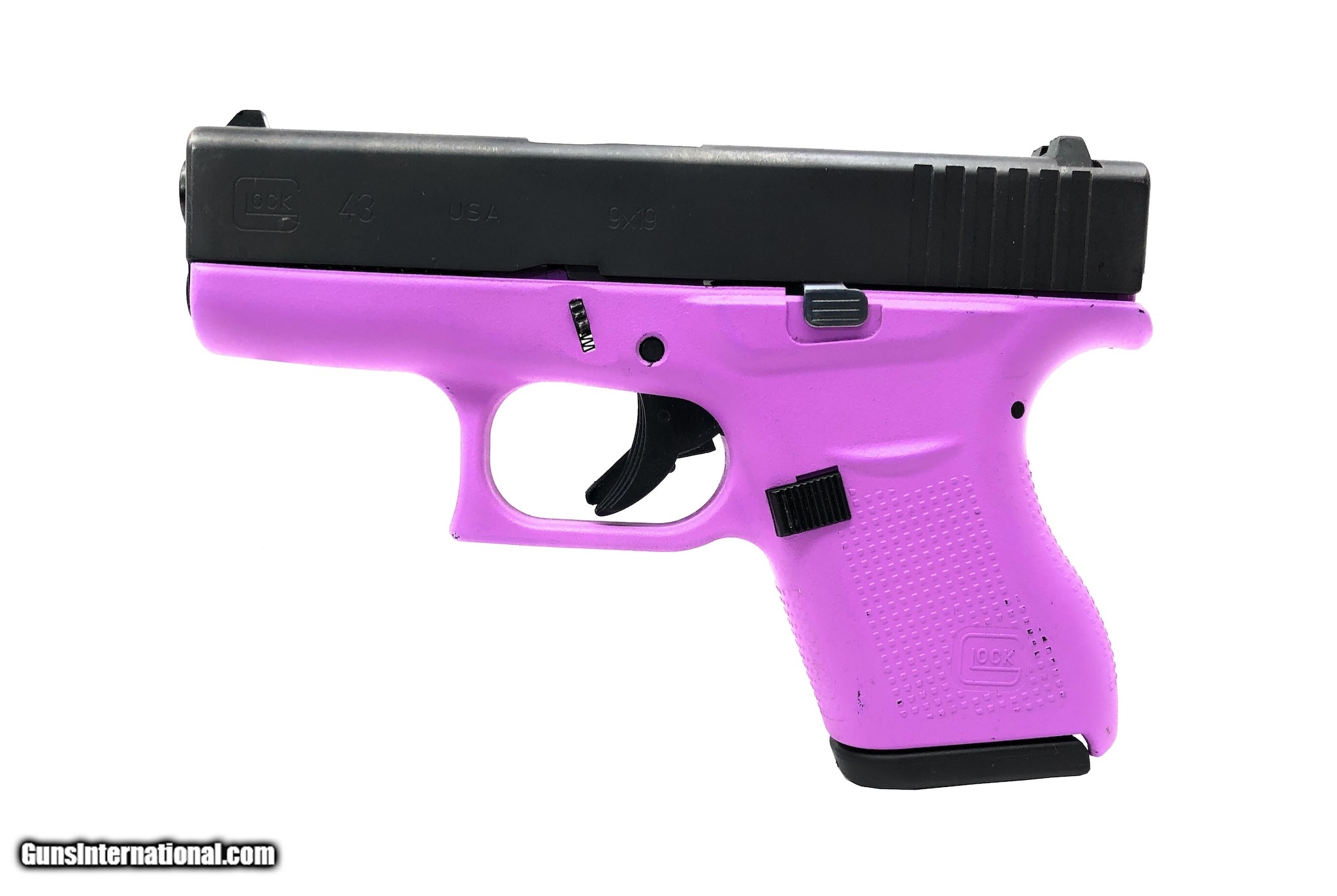 Description: Guns Listing ID: 702324 Manufacturer: Glock Model: G43 Two Tone Black/Purple Type: Semi Automatic Pistol Caliber: 9mm Serial No.: AFZD018 Capacity: 6 Barrel Length: 3.41\" Front Sight: Fixed One White Dot Rear Sight: Open Square Notch With White Outline Action: Double Action Grip: Purple Polymer Slide Finish: Black Frame Finish: Purple Polymer Overall Length: 6.26\" Weight: 18.4 oz SKU: 22100006 SOLD Manufacturer: GLOCK Model: 43 g43 Caliber Info: 9MM LUGER (9X19 PARA) Condition: Used - Non-Certified Barrels: 3.41 BARREL Finish: TWO-TONE |