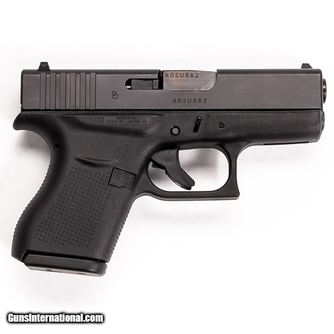 Description: Guns Listing ID: 287140 The Glock 43 is an award-winning single stack 9mm handgun known for its ease of concealment, accuracy, and reliability. This pistol is an excellent option for daily carry or a deeply concealed backup for law enforcement agents, defense contractors, and security guards. This Glock 43 is in very good condition. Purchase includes the original case and documents, one 6-round magazine, ten 7-round magazines, lock, loader, cleaning rod, and a right-handed IWB Kydex holster. SOLD Manufacturer: GLOCK Model: 43 Caliber Info: 9MM LUGER (9X19 PARA) Condition: Used - Certified Barrels: 3.4 barrel Finish: BLACK |