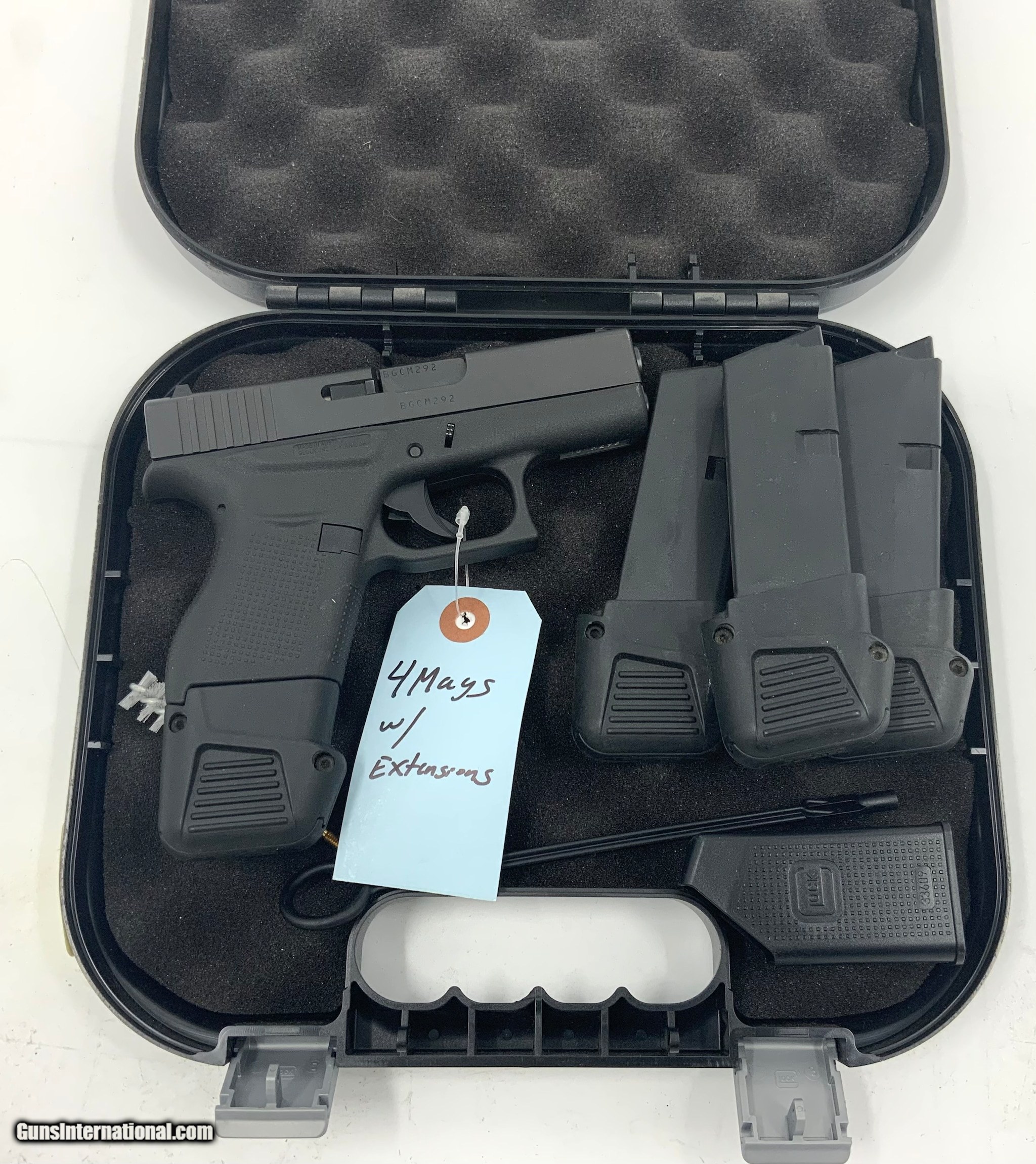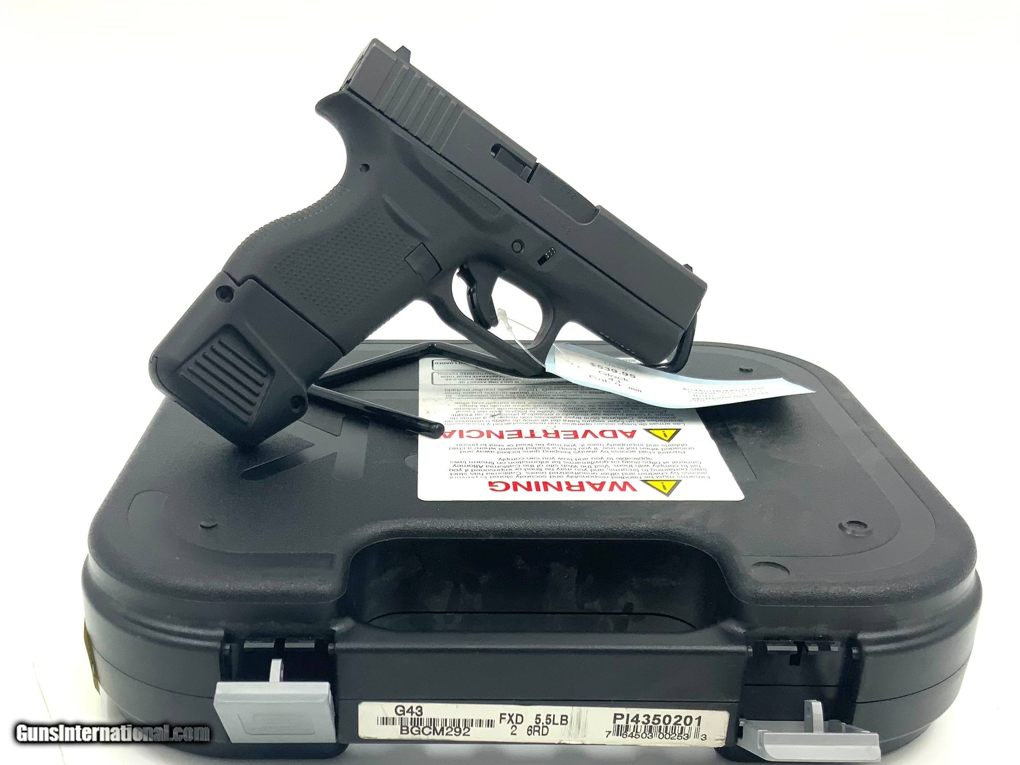 Description: Guns Listing ID: 505272 Glock 43 9mm, Used No major signs of wear or tear Factory 3 dot white sights Factory Trigger Comes with a total of (4) extended magazines Comes with the original box, paperwork, and speed loader SOLD Manufacturer: GLOCK Model: 43 Caliber Info: 9 MM Condition: Used - Non-Certified Barrels: 3.41 BARREL Finish: BLACK POLY GRIP/FRAME |