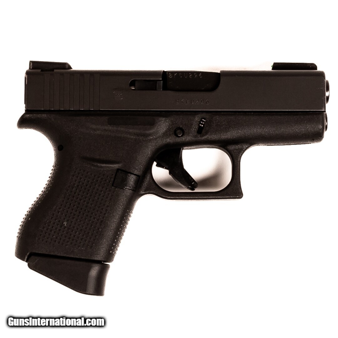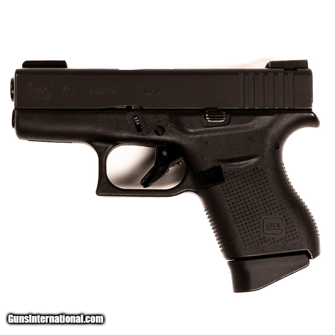 Description: Guns Listing ID: 685294 The Glock 43 is an award-winning single-stack handgun known for its ease of concealment, accuracy, and reliability. It‚‚s an excellent option for daily carry or a deeply concealed backup for law enforcement agents, defense contractors, and security guards. This G43 is equipped with night sights. It includes the original case, manual, one 6-round magazine, one 10-round magazine, and two concealed carry holsters (Tucite and T. Rex Arms Side Car). Get the best bang for your buck when you get a Certified Used Firearm . When you see the Certified Used stamp on any of our firearms, you can be confident that you’re getting exactly what you want – a gun only in very good to excellent condition and held to the highest quality standard. All Certified Used Guns come with a ‘no questions asked’ return policy . PLUS, ALL CERTIFIED USED GUNS SHIP FREE SOLD Manufacturer: GLOCK Model: 43 Caliber Info: 9MM LUGER (9X19 PARA) Condition: Used - Certified Barrels: 3.4 barrel Finish: BLACK |