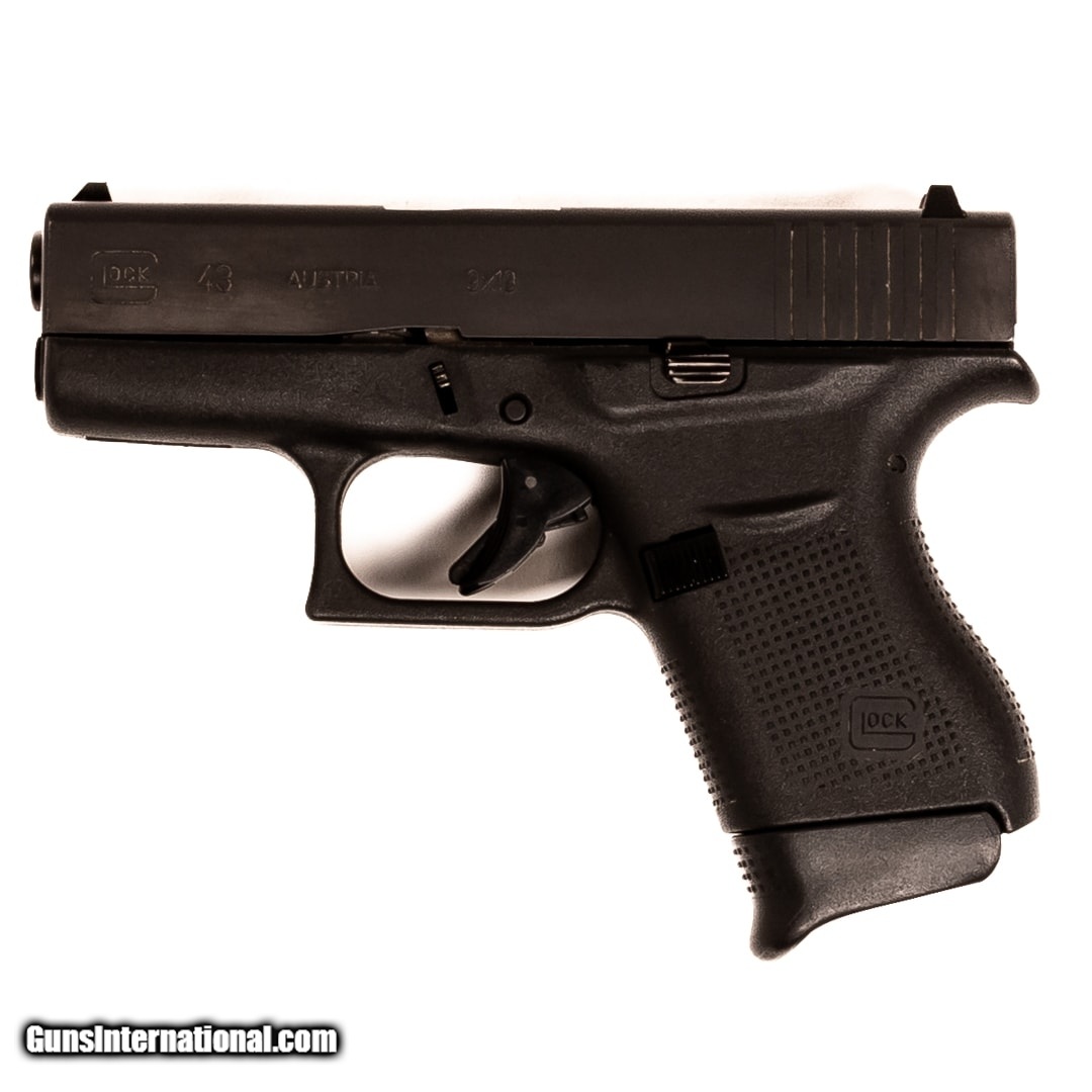 Description: Guns Listing ID: 690648 The Glock 43 is an award-winning single-stack handgun known for its ease of concealment, accuracy, and reliability. It‚‚s an excellent option for daily carry or a deeply concealed backup for law enforcement agents, defense contractors, and security guards. This G43 includes two magazines. Get the best bang for your buck when you get a Certified Used Firearm . When you see the Certified Used stamp on any of our firearms, you can be confident that you’re getting exactly what you want – a gun only in very good to excellent condition and held to the highest quality standard. All Certified Used Guns come with a ‘no questions asked’ return policy . PLUS, ALL CERTIFIED USED GUNS SHIP FREE SOLD Manufacturer: GLOCK Model: 43 Caliber Info: 9MM LUGER (9X19 PARA) Condition: Used - Certified Barrels: 3.4 barrel Finish: BLACK |