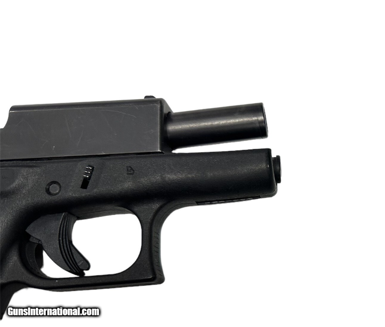 Description: Guns Listing ID: 793726 Manufacturer: Glock Importer: Glock Model: 43 Type: Handgun Action Type: Semi-Automatic Caliber / Gauge: 9 MM Finish: Blued Barrel Type: Single Grip Type: Polymer Barrel Length: 3 Magazine Capacity: 6 Magazine Quantity: 1 Case included: no Condition: Used SOLD Manufacturer: GLOCK Model: 43 Caliber Info: 9 MM Condition: Used - Non-Certified Barrels: 3" BARREL Finish: BLUED |
