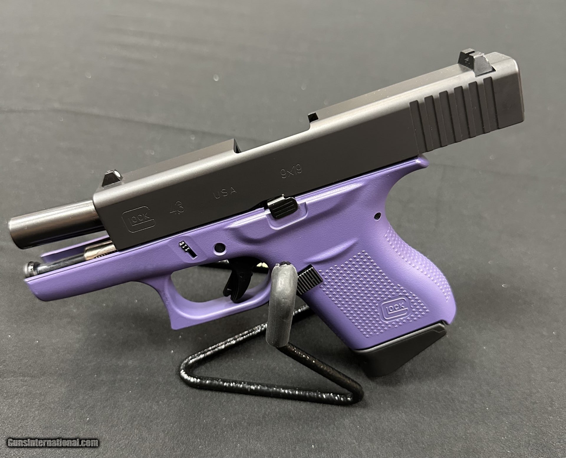 Description: Guns Listing ID: 900977 Glock 43 Purple/Black 9mm Pistol with a 3\" barrel, blue steel slide, purple frame, one 6 round magazine and original Glock carry case. Overall Condition 9/10 (A11009020) Posted by JS SOLD Manufacturer: GLOCK Model: 43 Caliber Info: 9 X 19 Condition: Used - Non-Certified Barrels: 3 BARREL Finish: BLACK |