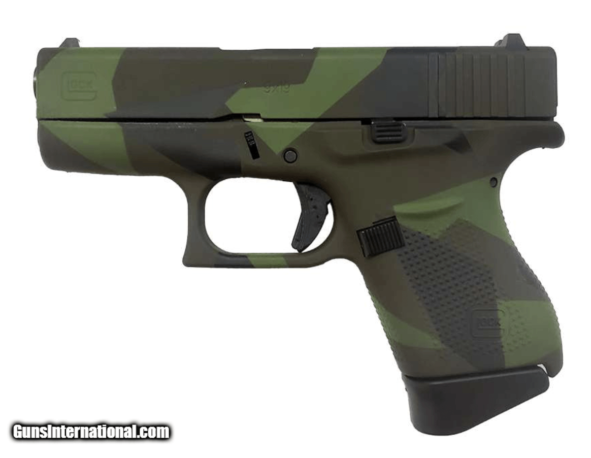 Description: Guns Listing ID: 599826 Glock 43 9mm Luger 3.39in Green Splinter Camo Cerakote Pistol - 6+1 Rounds - The already legendary G43 is a GLOCK Single stack, 9 mm Luger caliber pistol. It is ultra-concealable, accurate and a fantastic tool for all shooters regardless of one’s hand size. The grip has a built-in beaver tail design which allows the shooter to acquire a high and tight grip. The aggressive texture of the grip surface allows for comfortable and reliable operation of the pistol. The large magazine catch makes quick work of removing the six round magazine. Engineered based on the same superlative standards that GLOCK is famous for, the tiny G43 tolerates the same torture tests all its bigger brothers in the GLOCK pistol family withstand. Manufacturer: GLOCK Model: 43 Condition: new Action: SEMI AUTOMATIC Price: $699.99 Contact Seller |