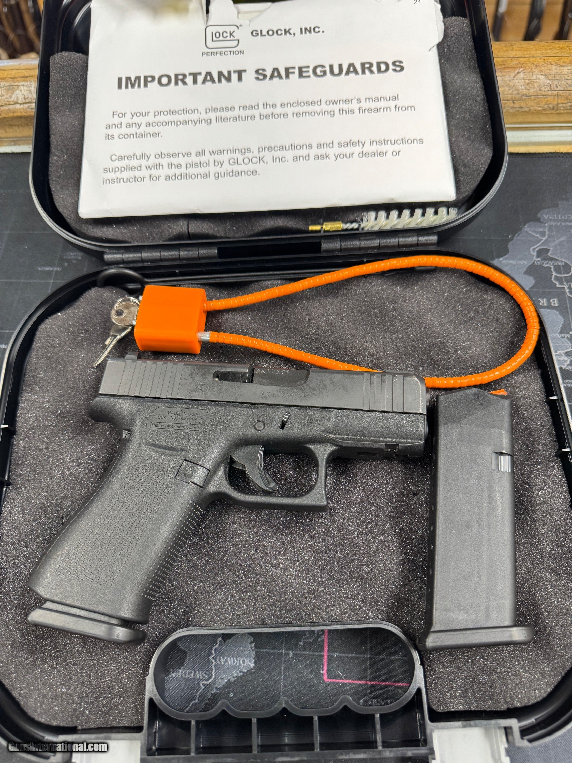 Description: This is an Excellent used pistol. It comes with the original box, 2 mags and papers. The gun has lmost no wear. Handgun Caliber: 9x19mm Parabellum (9mm Luger, 9x19mm NATO) Manufacturer: Glock Model: 43X Serial Number: AKTU299 Price: $379.99 Shipping: $35.00 Contact Seller |