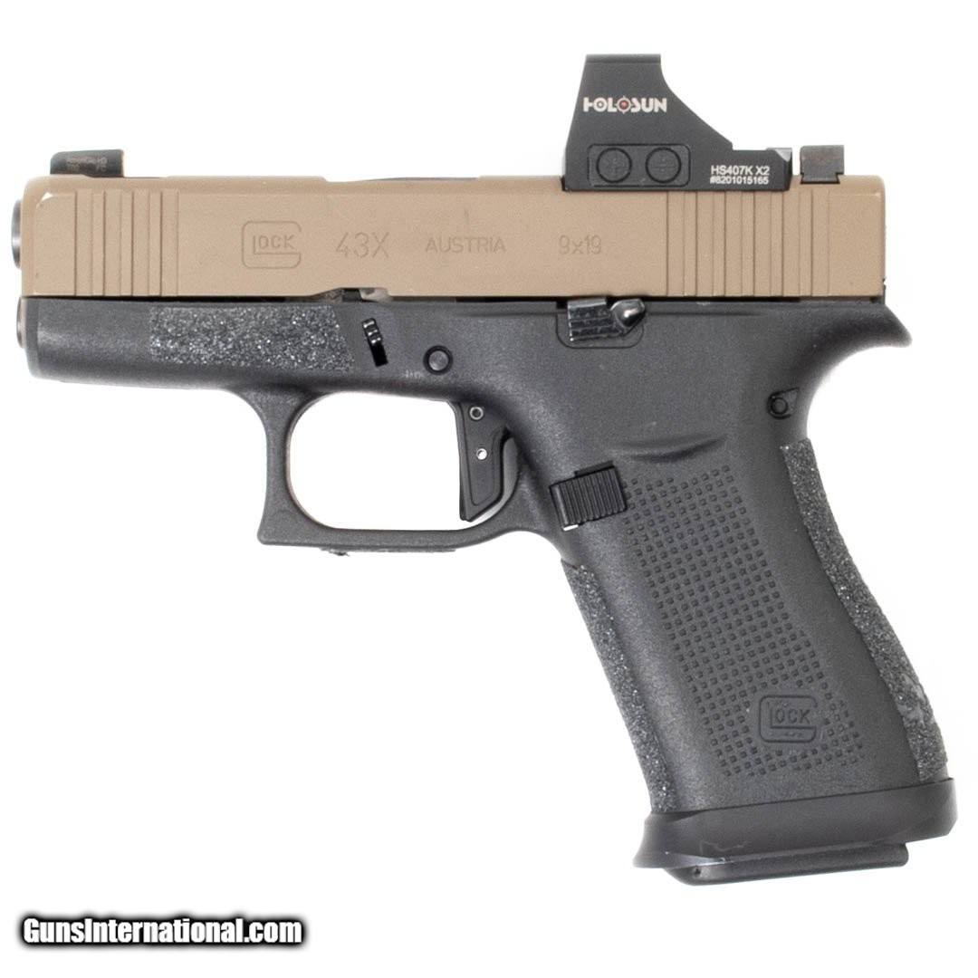 Description: Guns Listing ID: 571985 This Glock G43X features C barrel porting (by Glock Store), an FDE slide, train with purpose trigger, SLR magwell, a black frame, night sights, and a Holosun 407K optic. Purchase includes two 10-round magazines, the original case, an extra True Precision threaded barrel, and an MFT Kydex-style holster. Get the best bang for your buck when you get a Certified Used Firearm . When you see the Certified Used stamp on any of our firearms, you can be confident that you‚re getting exactly what you want – a gun only in very good to excellent condition and held to the highest quality standard. All Certified Used Guns come with a ‚no questions asked‚ return policy . SOLD Manufacturer: GLOCK Model: 43X Caliber Info: 9MM LUGER (9X19 PARA) Condition: Used - Certified Barrels: 3.30" BARREL Action: SEMI AUTOMATIC Finish: fde Weight: 1.2 |
