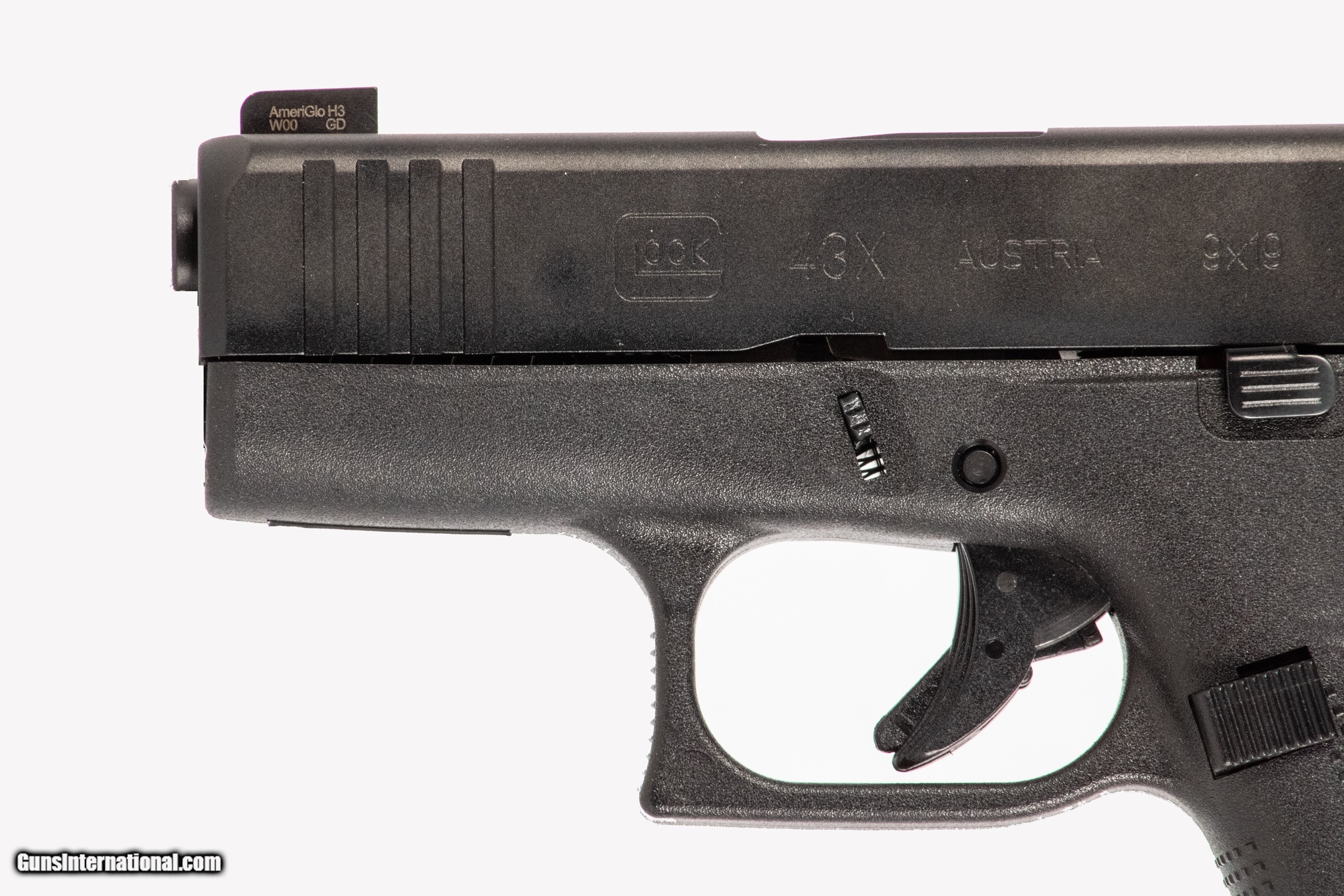 Description: Glock 43X chambered in 9mm with a 3 1/2 inch barrel, bright & shiny bore, case, 1 extra magazine and aftermarket night sights. The NRA grading condition for this firearm is Excellent. Dury's Lifetime Warranty All firearms purchased from Dury’s Gun Shop, Inc., NEW or USED, are covered by a lifetime warranty. We will repair or replace, at our discretion, any firearm purchased from Dury’s Gun Shop, Inc. for as long as it is owned by the purchaser. This warranty is not transferable. WE BUY GUNS! NO COLLECTION TOO BIG OR SMALL FOR OUR GUNS INTERNATIONAL CUSTOMERS ALL OF OUR FIREARMS CAN BE PURCHASED DIRECTLY FROM OUR DURY'S GUNS ! SOLD Manufacturer: Glock Model: 43X Caliber Info: 9 mm Barrels: 3inches |
