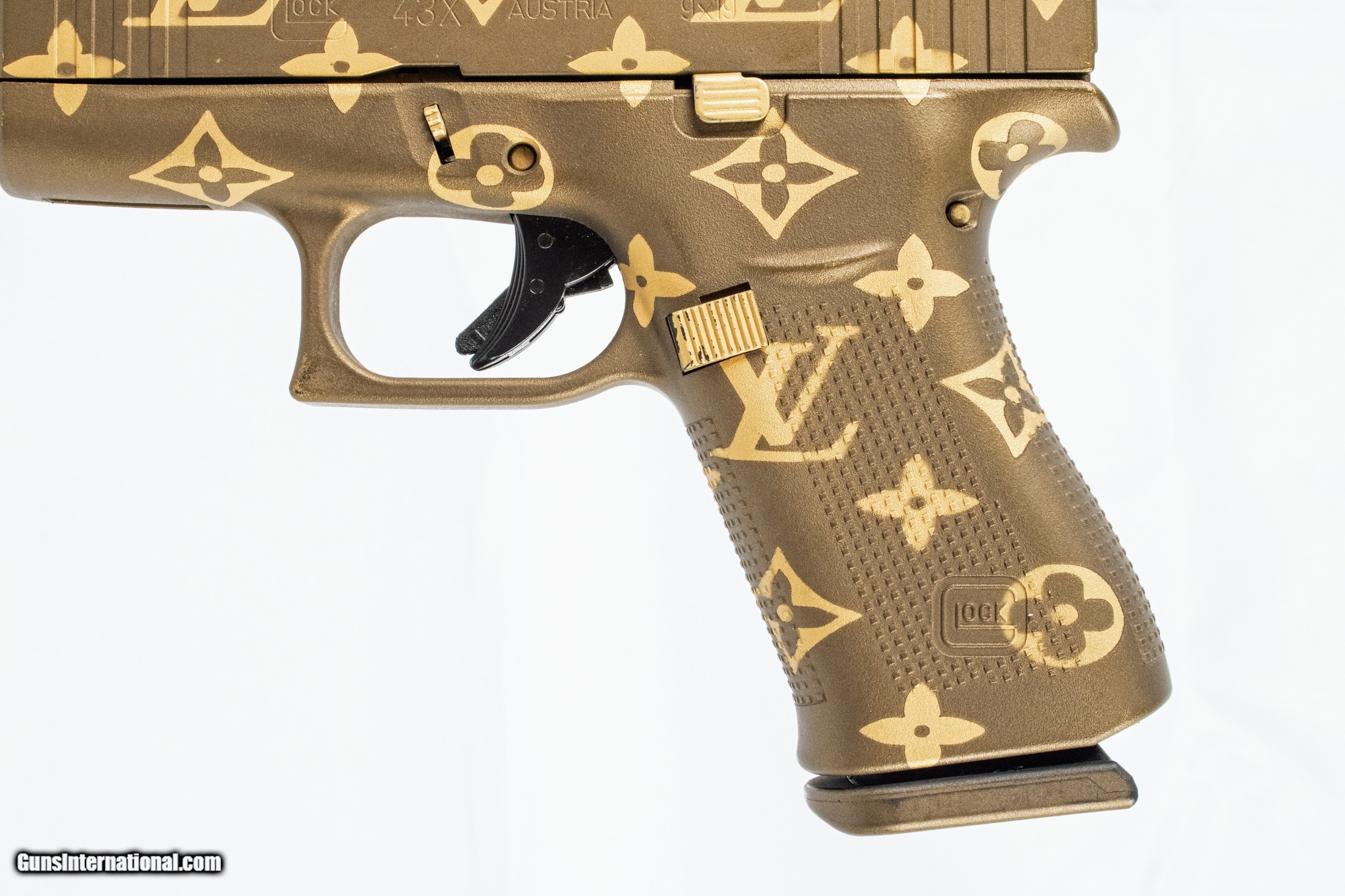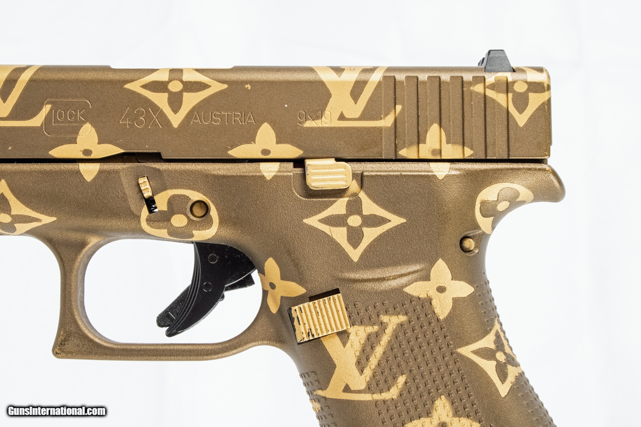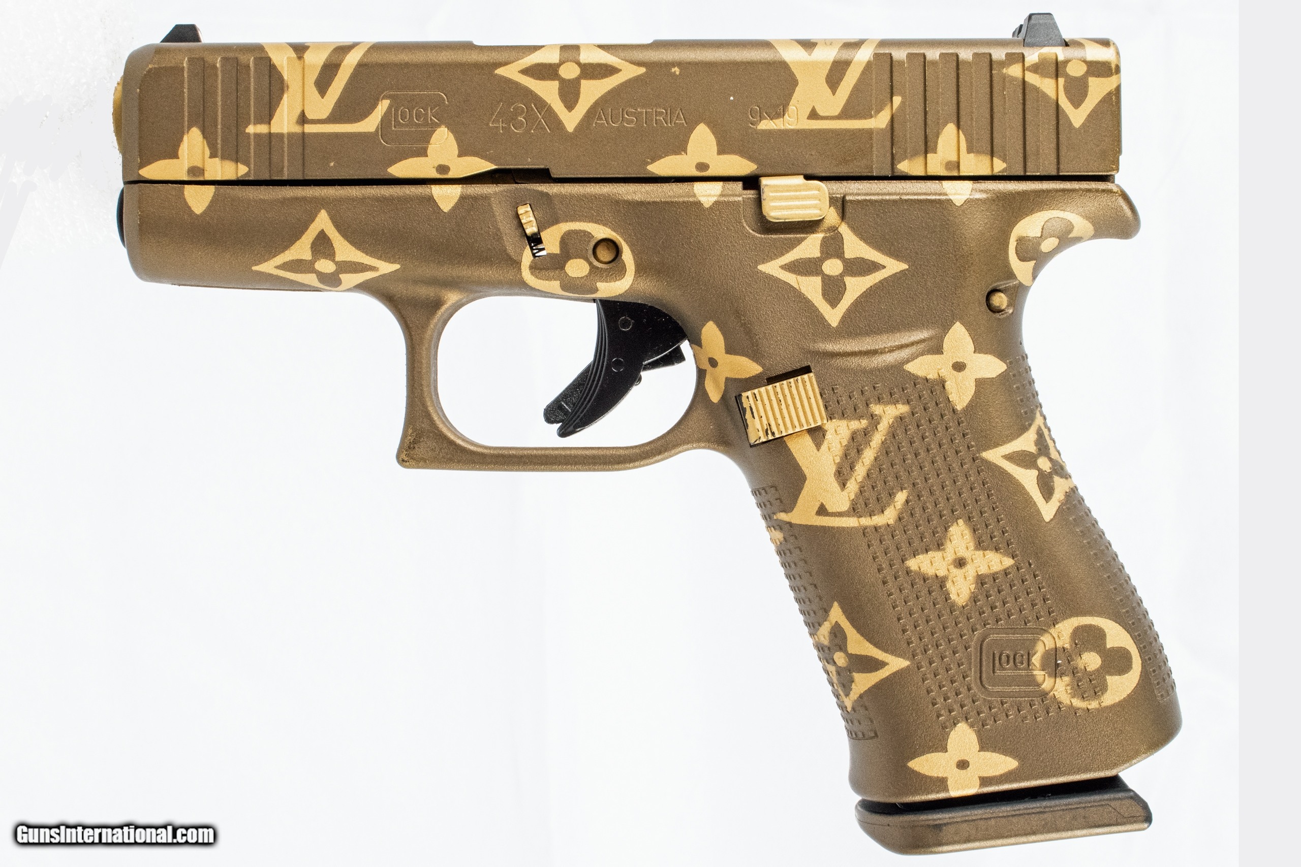 Description: Glock 43X chambered in 9mm with a 3 1/2 inch barrel, bright & shiny bore, 1 extra magazine and a custom Louis Vuitton cerakote. The NRA grading condition for this USED firearm is Excellent. Dury's Lifetime Warranty: All firearms purchased from Dury’s Gun Shop, NEW or USED, are covered by a lifetime warranty. We will repair or replace, at our discretion, any firearm purchased from Dury’s Gun Shop, Inc. for as long as it is owned by the purchaser. This warranty is not transferable. WE BUY GUNS! NO COLLECTION TOO BIG OR SMALL FOR OUR GUNS INTERNATIONAL CUSTOMERS ALL OF OUR FIREARMS CAN BE PURCHASED DIRECTLY FROM OUR DURY'S GUNS ! SOLD Manufacturer: Glock Model: 43X Caliber Info: 9 mm Barrels: 3inches |