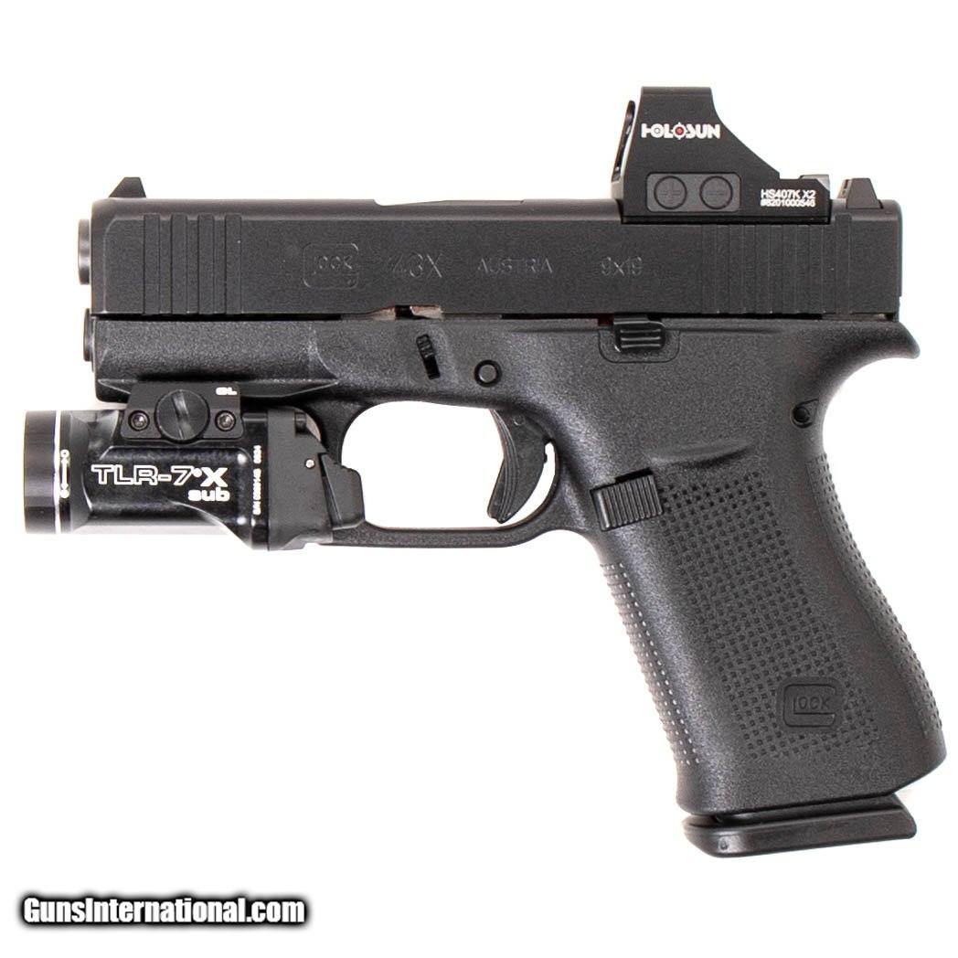 Description: Guns Listing ID: 503674 Check it out, the ultimate daily carry option: our custom 43X Glock pistol with a Streamlight TLR-X Sub and a Holosun HS407K-X2. This compact powerhouse combines precision, durability, and reliability in one sleek package. The Streamlight TLR-X Sub provides powerful illumination for low-light situations, while the Holosun HS407K-X2 offers a crisp red dot sight for quick target acquisition. With unmatched quality from industry giants, this customized Glock ensures you‚‚re always prepared for whatever comes your way. Upgrade your EDC with top-tier components chosen by the Guns Custom Team for unparalleled performance and peace of mind. Part breakdown: - Holosun HS407K-X2 - C&H Mounting Plate - Streamlight TLR-X Su SOLD Manufacturer: GLOCK Model: 43X MOS (GUNS CUSTOM) Caliber Info: 9MM LUGER (9x19 PARA) Condition: new Barrels: 3.25 Action: STRIKER FIRED Finish: black Weight: 1.2 LBS |