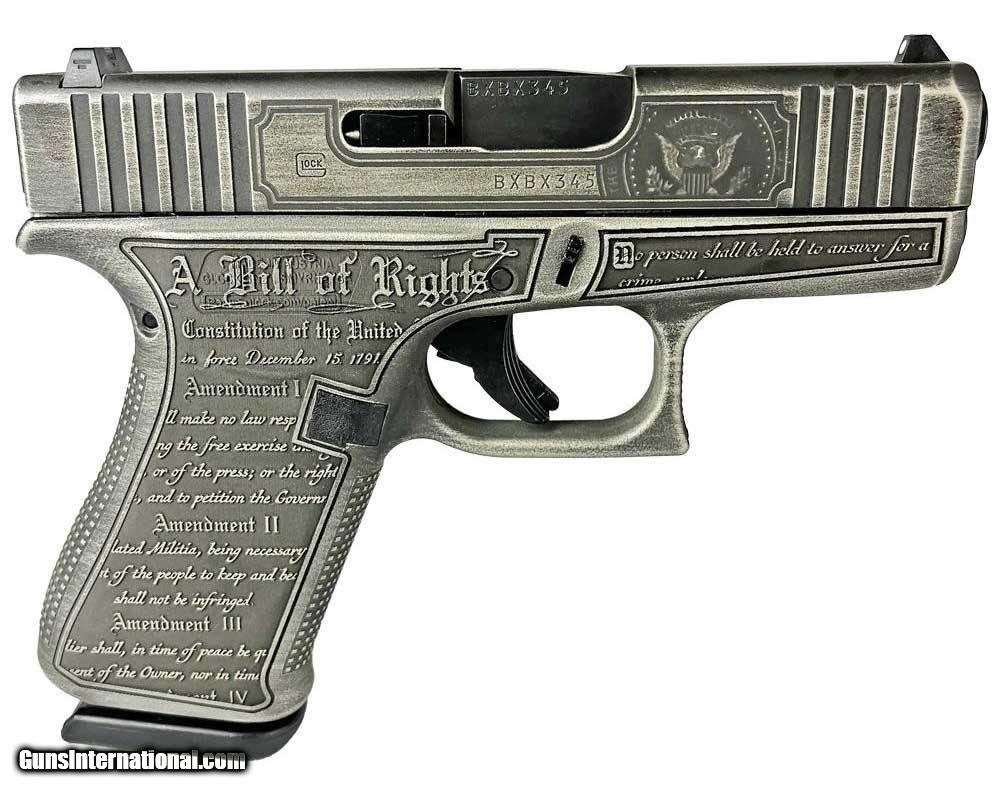 Description: Guns Listing ID: prod242939 President Trump 2024 Austria Special Edition- Left Side 45th Preserve, Protect, Defend w/ Donald J Trump signature. Right Side Presidential Seal and Bill of Rights Chambered in 9mm Luger the G43X features a compact Slimline frame with a slide with an nDLC finish. The 10-round magazine capacity makes it ideal for concealed carry. Designed for comfort, The G43X combines a compact-size grip length, a built-in beaver tail and a subcompact-slim slide for a comfortably balanced, versatile grip that´s ideal for a variety of users. - CALIBER 9MM - MAGAZINE (1) 10rd capacity - BARREL 3.4\" - SIGHTS 3-White Dot - GRIPS Battleworn Silver Polymer SOLD Manufacturer: GLOCK Model: 43X TRUMP 2024 SE Caliber Info: 9MM LUGER (9X19 PARA) Condition: new Barrels: 3.4 BARREL Finish: BATTLEWORN SILVER |
