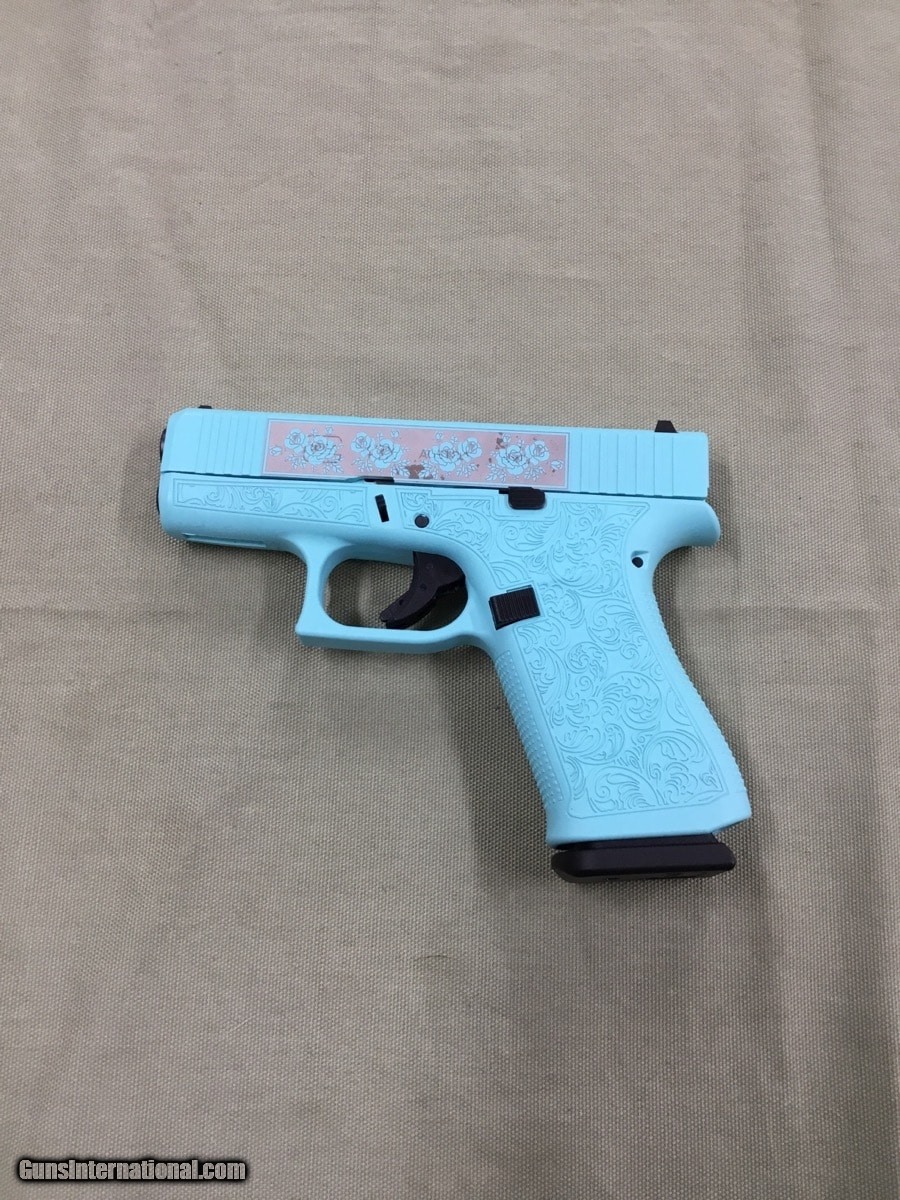 Description: Guns Listing ID: 470534 Inventory Number: FCS057549 Description: PISTOL: GLOCK MODEL 43X (GLPX4350201GRP) TIFFANY BLUE GLOCK & ROSES, OTHER, NA, SEMI - AUTOMATIC, 9X19MM, GLOCK N ROSES 43X 10RD 9MM Specific Details: NRA Modern Gun Condition Rating Standards: EXCELLENT: New condition, used but little, no noticeable marring of blue or wood. Finish / Color: Other Case & Box: Yes - Includes original box Action: Semi - Automatic Caliber: 9X19MM Magazine: Yes - and includes 1 extra magazine Holster: No - Not Included SOLD Manufacturer: GLOCK Model: 43x Caliber Info: 9MM LUGER (9X19 PARA) Condition: Used - Non-Certified Barrels: 3.25 BARREL Finish: TIFFANY BLUE |