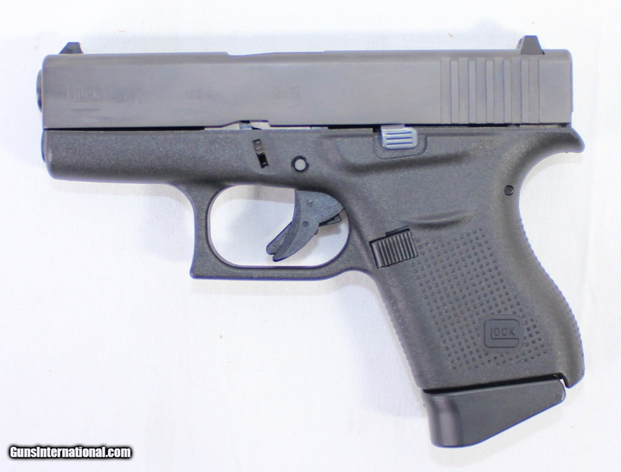 GLOCK G43 9MM 2-MAGS, BOX, LEATHER HOLSTER SEMI-AUTO PISTOL