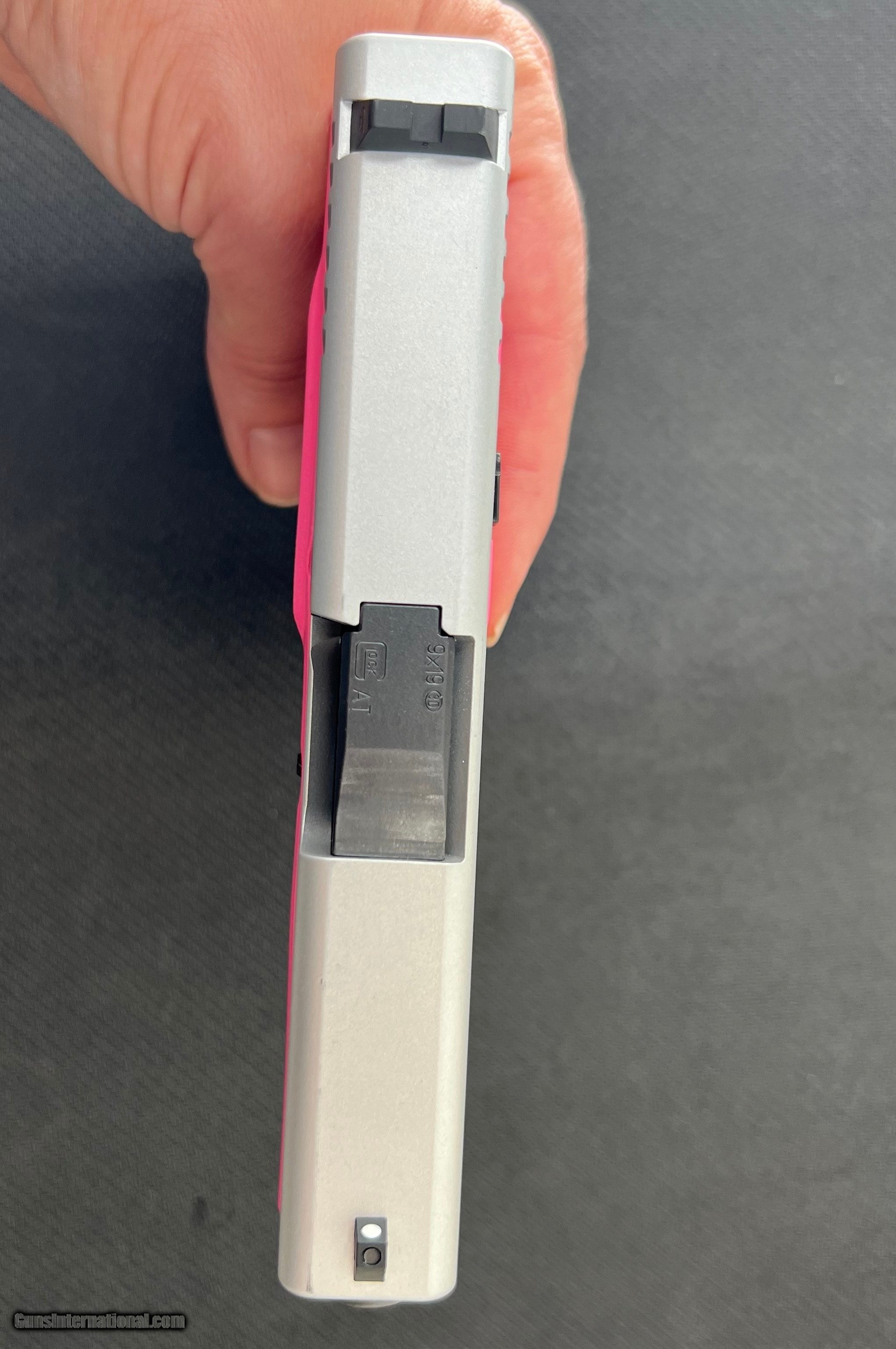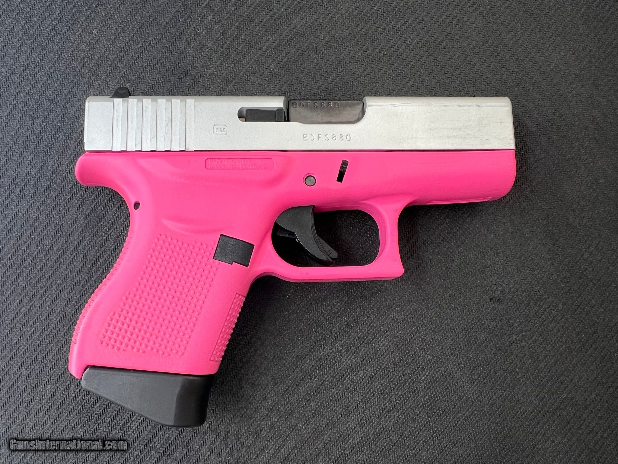 Description: Guns Listing ID: 942122 USED: has some pictured scratches on slide and frame from the holster. Bravo G48 holster included. The G43 is our new single stack, 9mm pistol. The G43 is the most highly desired and anticipated release in GLOCKs history. The G43 is the answer to your everyday concealed carry needs. It‚‚s ultra-concealable, accurate and fantastic for all shooters regardless of hand size. The grip has a built in beaver tail design which allows the shooter to acquire a high and tight grip. The aggressive texture of the grip lets the shooter more easily operate the pistol. The large magazine catch allows for easy removal of the six round magazine. Engineered to the same standards, the G43 can withstand the same tortures as other GLOCK pistols. Caliber/System: 9x19 / Safe Action Length: 159 mm / 6.26 in. Width: 26 mm / 1.02 in. Length Between Sights: 132 mm / 5.20 in Height: 108 mm / 4.25 in. Barrel Length: 86 mm / 3.39 in. Weights: Unloaded: 509 g / 17.95 oz., Loaded: 634 g / 22.36 oz. Trigger Pull: 2.5 kg / 5.5 lbs. Trigger Travel: 12.5 mm / 0.49 in. Barrel Rifling: right hand, hexagonal Length of Twist: 250 mm / 9.84 in. Magazine Capacity: Standard: SOLD Manufacturer: GLOCK Model: G43 Caliber Info: 9MM LUGER (9X19 PARA) Condition: Used - Non-Certified Barrels: 3.39 BARREL Finish: PINK |