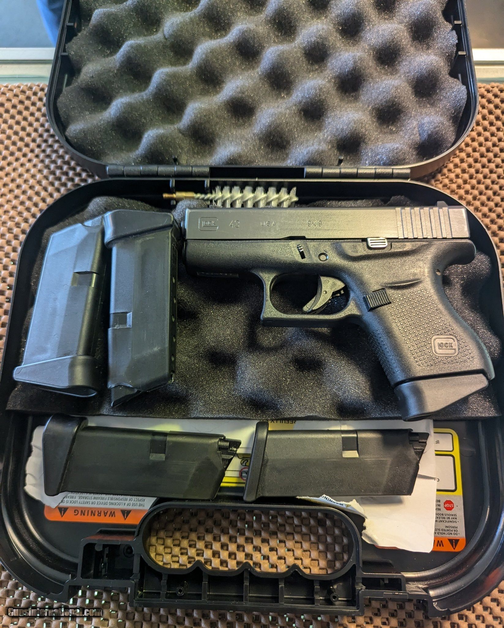 Description: Guns Listing ID: 1317634 Glock 43 in original hard case with 5 magazines. SOLD Manufacturer: GLOCK Model: G43 Caliber Info: 9MM LUGER (9X19 PARA) Condition: Used - Non-Certified Barrels: 3.5 BARREL |
