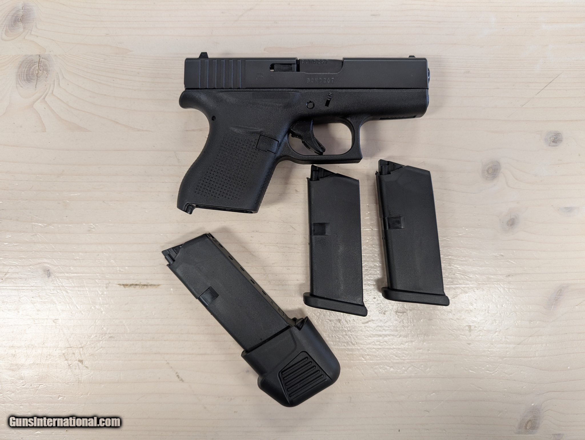 Description: Guns Listing ID: 485525 The already legendary G43 is a single stack, 9mm Luger caliber pistol. It is ultra-concealable, accurate and a fantastic tool for all shooters regardless of one‚‚s hand size. The grip has a built-in beaver tail design which allows the shooter to acquire a high and tight grip. The aggressive texture of the grip surface allows for comfortable and reliable operation of the pistol. The large magazine catch makes quick work of removing the six round magazine. Engineered based on the same superlative standards that GLOCK is famous for, the tiny G43 tolerates the same torture tests all its bigger brothers in the GLOCK pistol family withstand. Includes two 6-round magazines. Glock 43 Specifications Caliber: 9mm Luger Model: Glock 43 Series: Subcompact Type: Pistol Frame: Finish Black Action: DAO Slide Description: Black Capacity: 6 Magazines: 3 Barrel Length: 3.4\" Barrel Type: Cold Hammer-Forged Polygonal Rifled Frame Material: Polymer Grips: Black Polymer Grip/Frame Safety: Trigger/Firing Pin/Drop Weight: 17.9 oz Made in the USA The Glock 43 is the ideal concealed carry firearm, especially in hot environments where you require a small firearm for the most concealment possible. The Glock 43 is ultra-reliable, lightweight, and capable of firing almost any 9mm ammo SOLD Manufacturer: GLOCK Model: G43 Caliber Info: 9MM LUGER (9X19 PARA) Condition: Used - Non-Certified Barrels: 3.5 BARREL Action: STRIKER Weight: 1.1 lbs. |