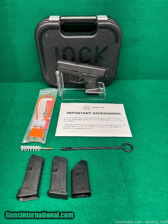 Description: Guns Listing ID: 504348 This listing is for a USED Glock 43 9mm Black Finish Sub-Compact Single Stack 3.41\" BBL 6+1. This is a used gun, it has been fired and will have residue present. This Glock 43 is chambered in 9mm, and it will hold 6 rounds in the magazine. This pistol comes with a 3.41 inch barrel. It comes equipped with a fixed front sight, and a fixed rear sight. Other than a small mark on top of the rear sight, this pistol appears to be in great condition. The action appears to be in good condition, the finish appears to be in good condition, and the bore appears to be in good condition. This pistol comes with one 6 round magazine with the standard base plate, one 6 round magazine with an extended base plate, a cleaning rod/brush, a speed loader, an owner’s manual, a cable lock, and the hard case. This would be a great concealed carry pistol. ** DISCLAIMER** THIS FIREARM HAS NOT BEEN TEST FIRED*** SOLD Manufacturer: GLOCK Model: G43 Caliber Info: 9MM LUGER (9X19 PARA) Condition: Used - Non-Certified Barrels: 3.4 BARREL Action: STRIKER Weight: 1.2 lbs. |