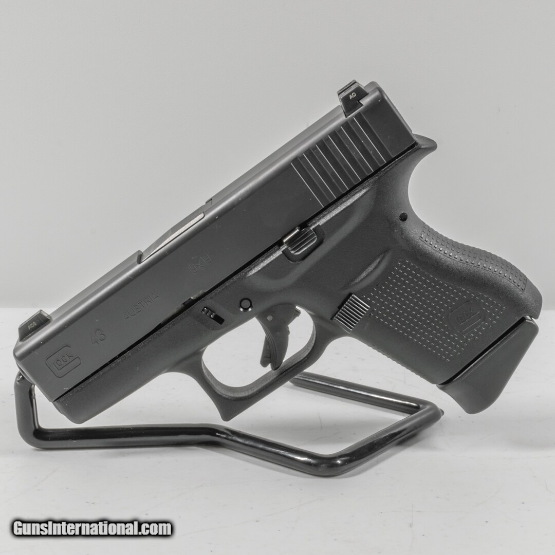 Description: Guns Listing ID: 805415 Manufacturer: Glock Model: 43 Condition: Grade 1 Caliber: 9mm Luger Action: Striker Barrel Length: 3.41\" Capacity: 6-rd Inventory: Includes 2 mags. -Please be aware that we have not test fired this gun. Unless otherwise stated, expect this firearm to fire and function safely. -All sales are final. Any discrepancies between the gun and our description should be communicated to us prior to the transfer. -Returns will not be accepted after the transfer process has been submitted or completed. -This item is a Police Trade-In or LEO. The gun you receive may vary from the gun featured in photos. This may include the number of mags, boxes/cases, any accessories, bore condition, and cosmetic flaws such as scratches, dents, blemishes, etc. LEO Weapon Grade Guide: Grade 1 The gun is in very good to excellent condition Grade 2 The gun is in good to very good condition Grade 3 The gun is in fair to good condition SOLD Manufacturer: GLOCK Model: G43 Grade 1 Caliber Info: 9MM LUGER (9X19 PARA) Condition: Used - Non-Certified Barrels: 3.41 BARREL Finish: BLACK |