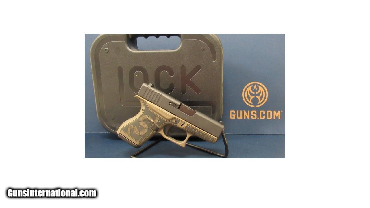 Description: Guns Listing ID: 522643 The GLOCK G43 is a reliable striker-fired semi-automatic pistol designed for value performance. This sub-compact 9mm firearm features a 3.4\" barrel and a striking custom bronze \"Join or Die\" motif Cerakote finish, making it as eye-catching as it is functional. With a capacity of 6 rounds and one magazine included, it’s perfect for concealed carry or home defense. Standard Glock sights ensure quick target acquisition, and a durable polymer frame provides a lightweight yet quality feel. Packaged in a hardshell case, the G43 is a solid choice. SOLD Manufacturer: GLOCK Model: G43 Join or Die Caliber Info: 9MM LUGER (9x19 PARA) Condition: Used - Non-Certified Barrels: 3.4 Action: SEMI AUTOMATIC Finish: bronze cerakote |